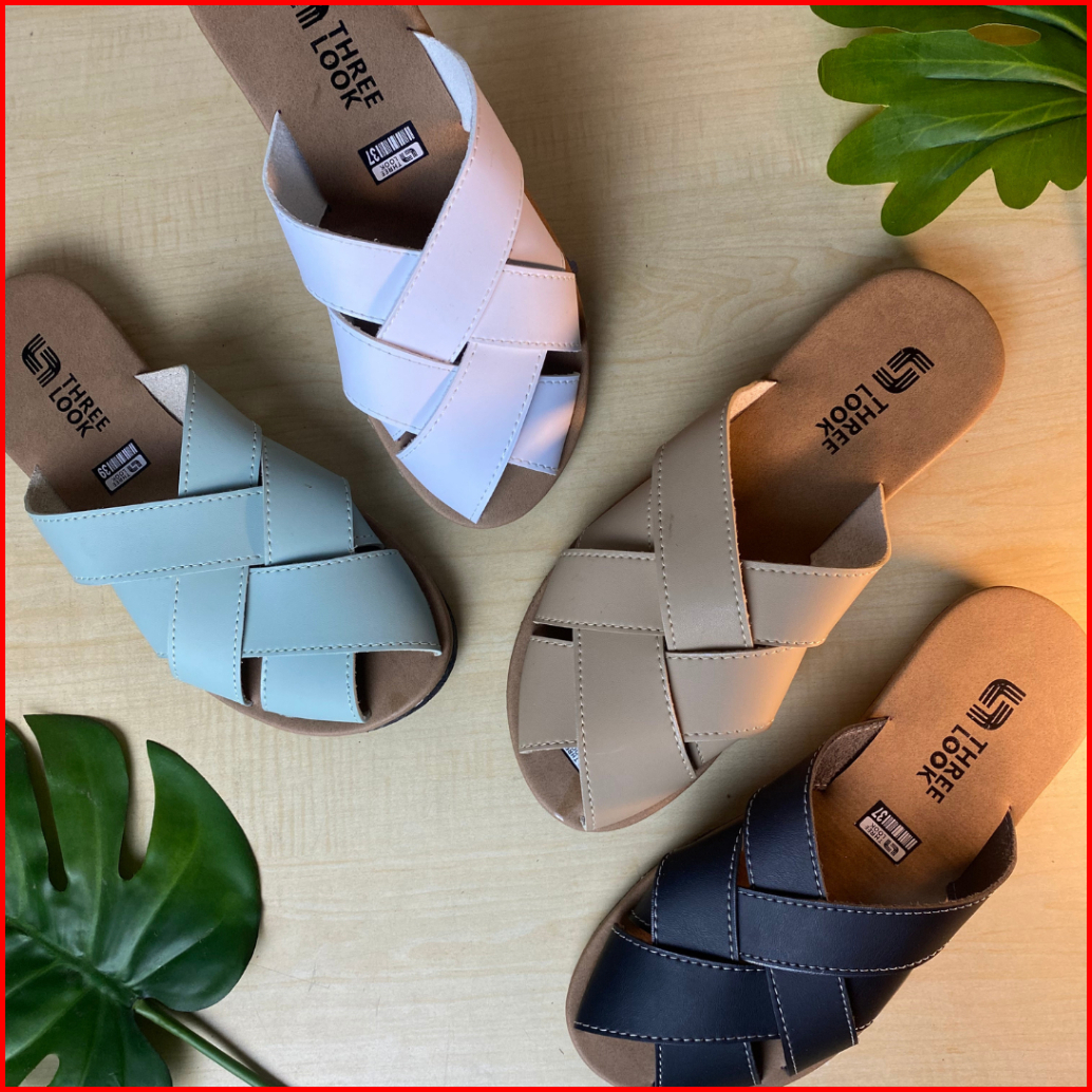 Threelook - Sandal Kulit Wanita Dewasa Slip On Flat - Aisyah