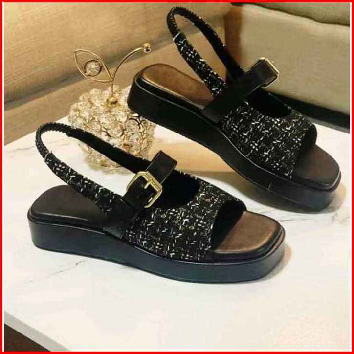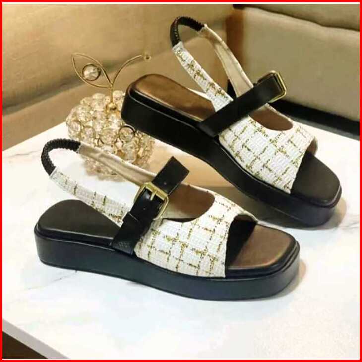 Aorora - Sandal Wanita Platform Tali Belakang Gesper Karet Elastis Kekinian Tersedia Size 37-40