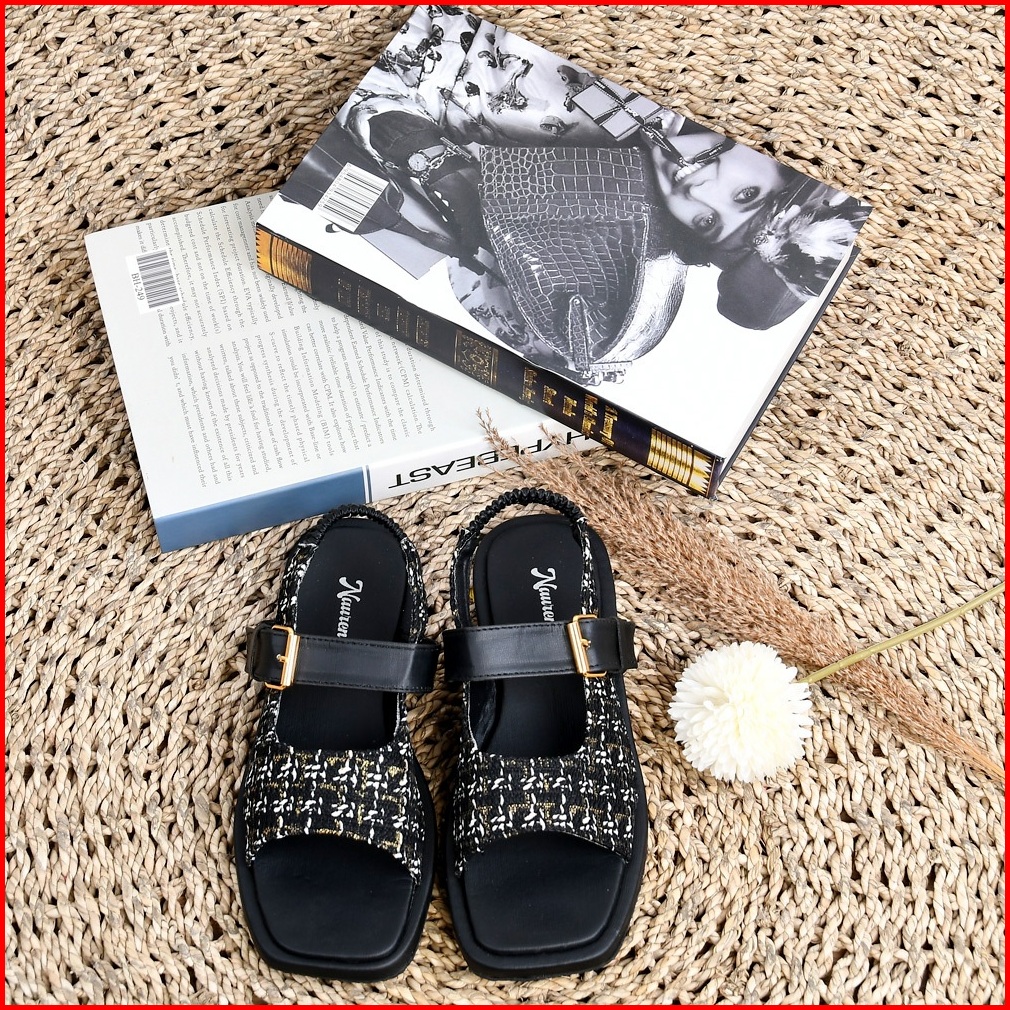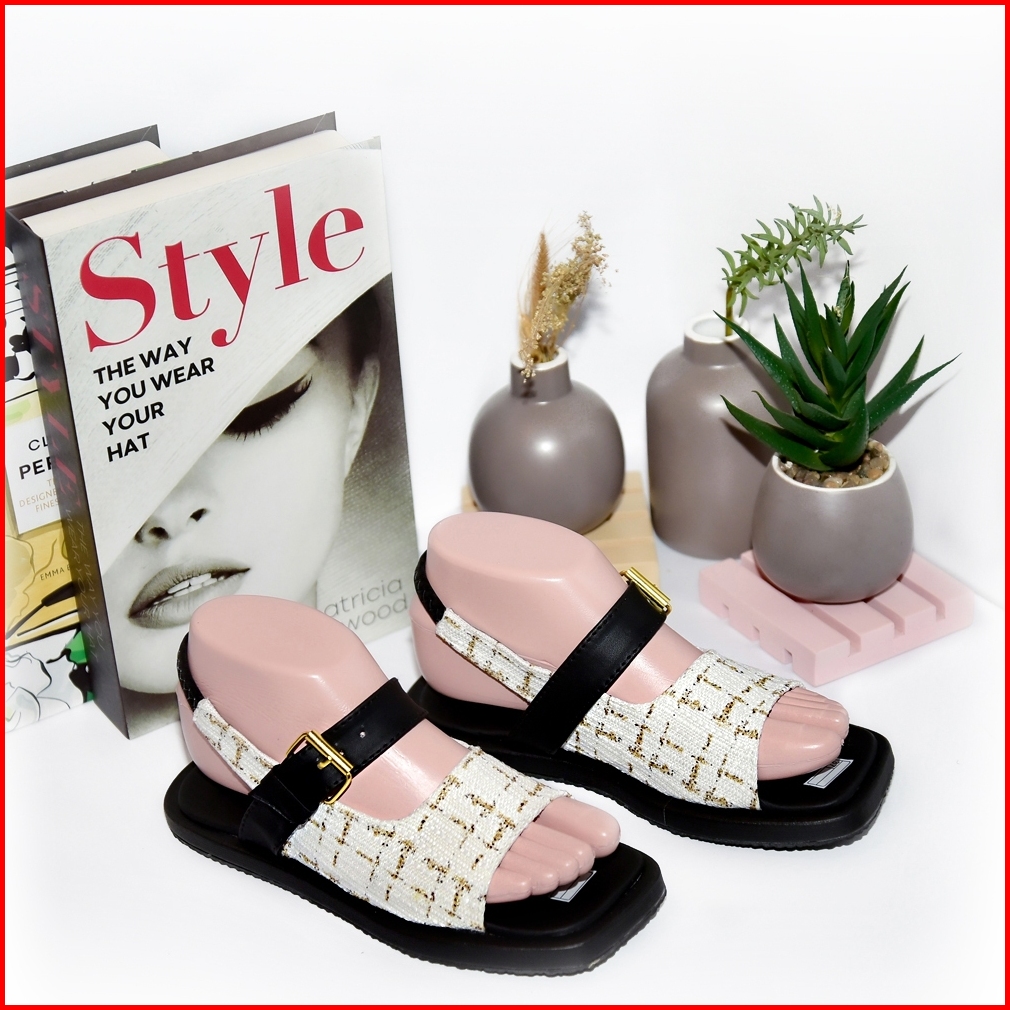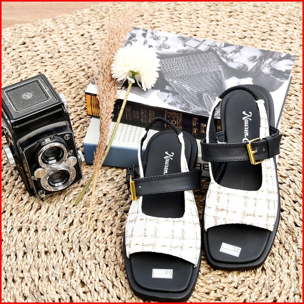 Wica Sendal Wedges Sandal Platform Wanita Kekinian Rajut Gesper Model Trendy