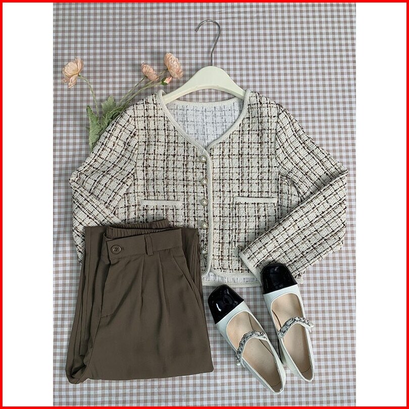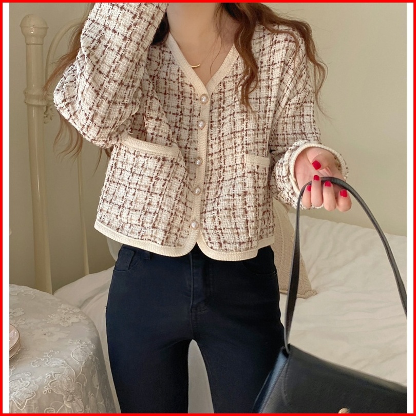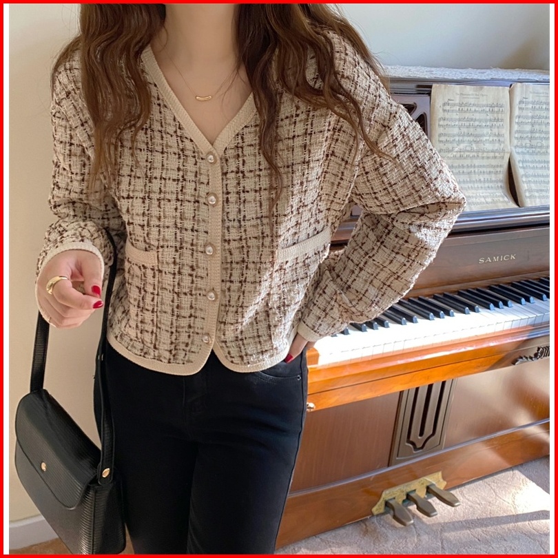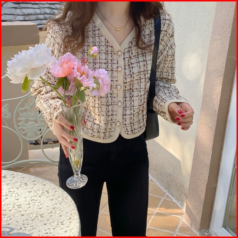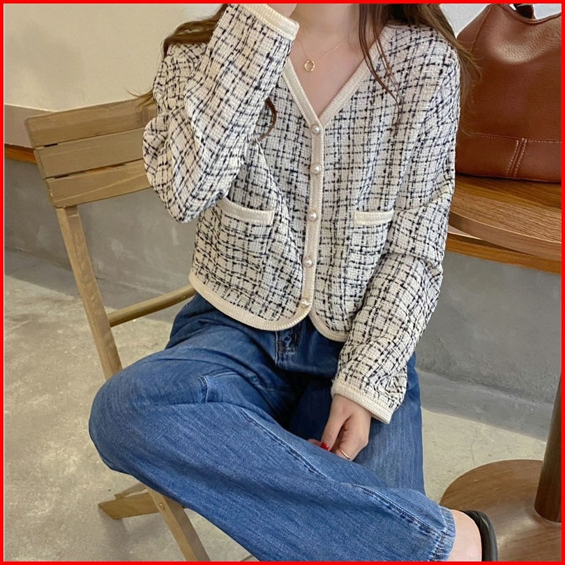 Lybh Store Jaket Pendek V-neck Korea Style Loose Crop Import Top Lengan Panjang Cardigan