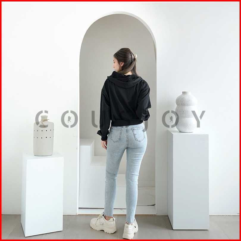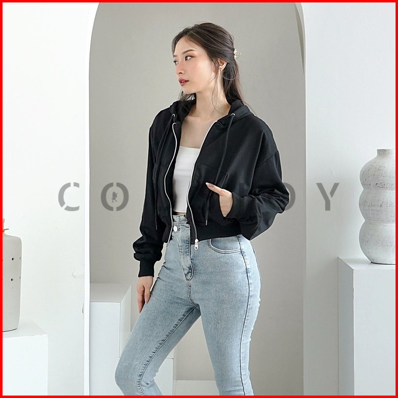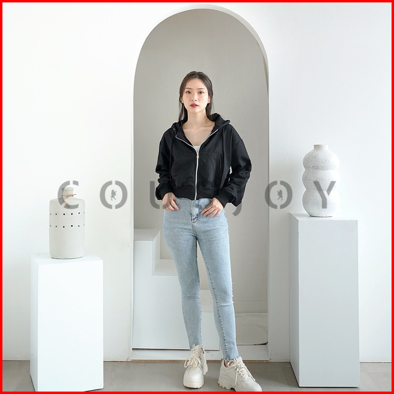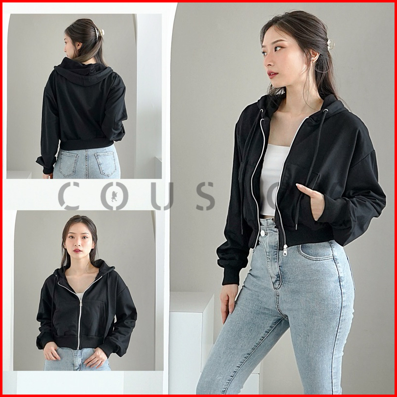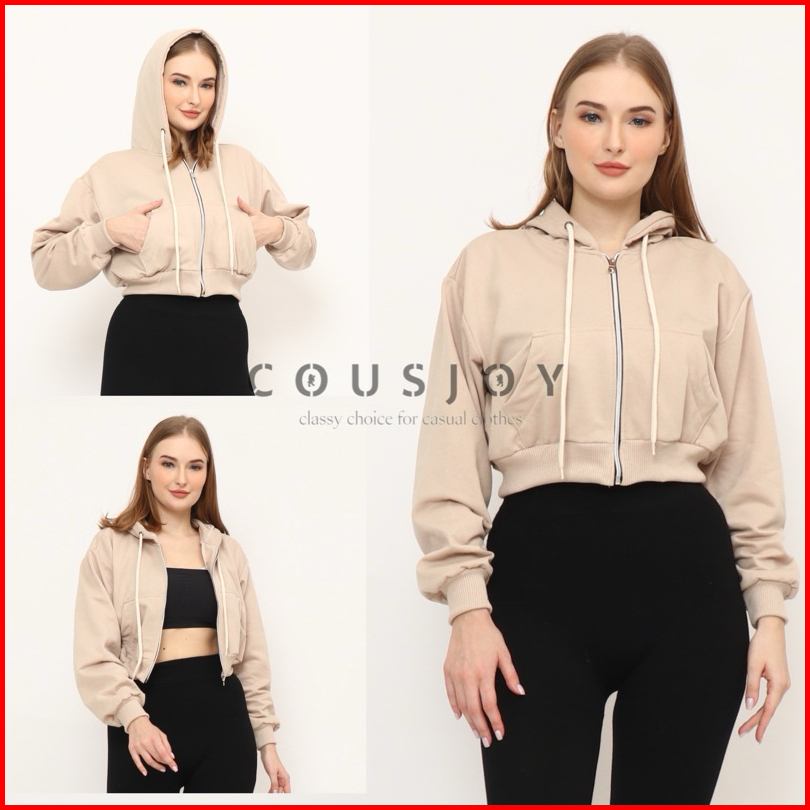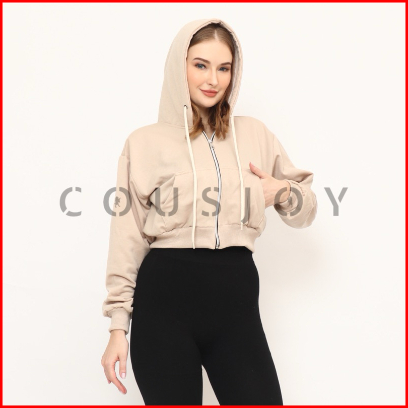 Bestseller Jacket Hoodie Crop Top - Jaket Sweater Polos Zipper Atasan Wanita