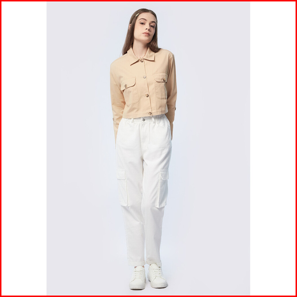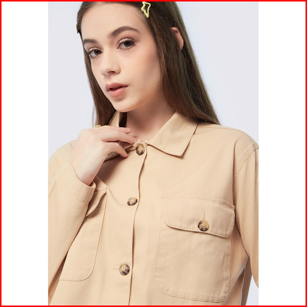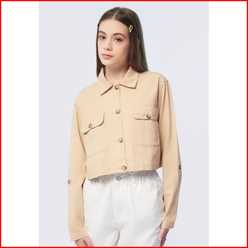 Colorbox Roll Up Sleeves Crop Jacket Beige