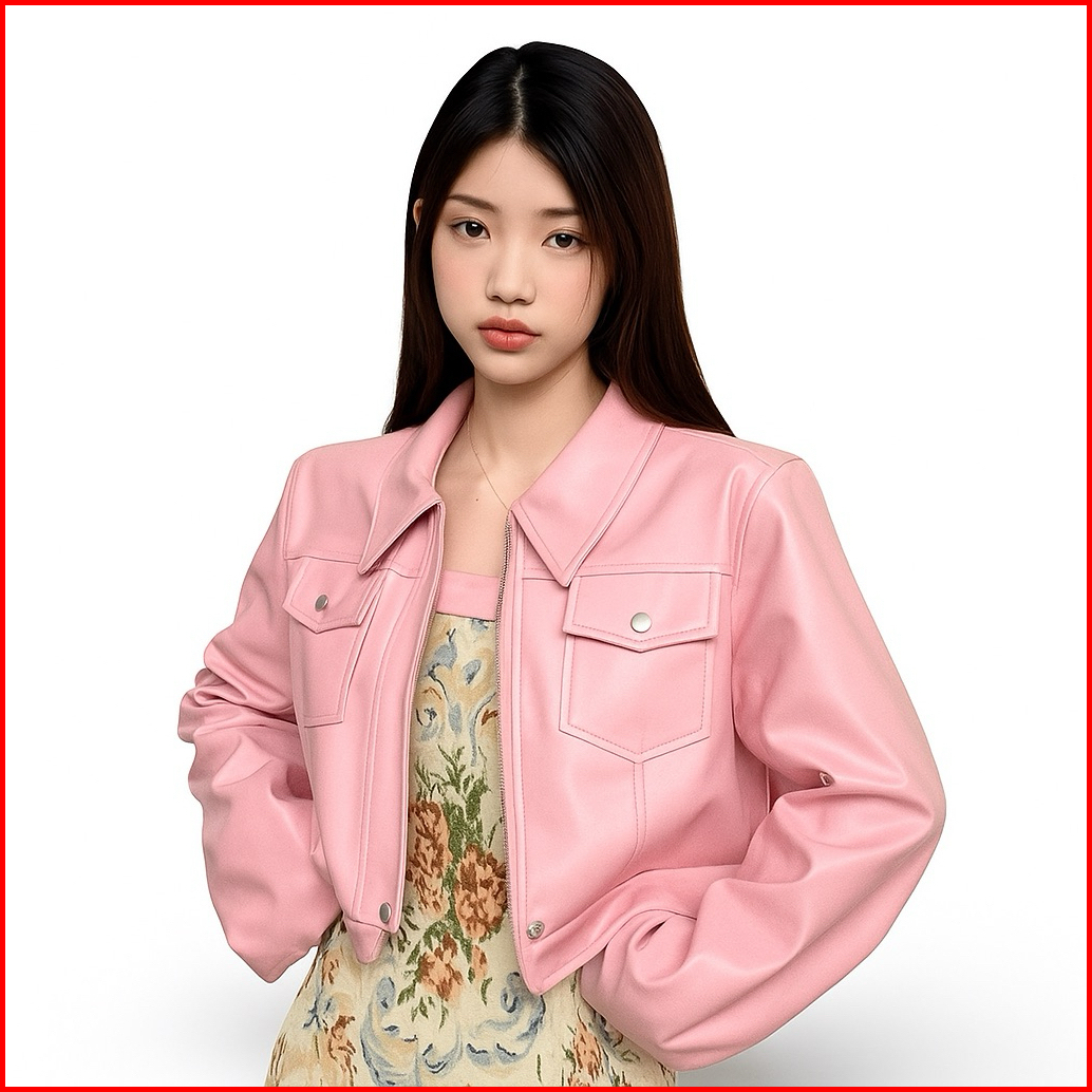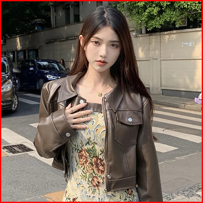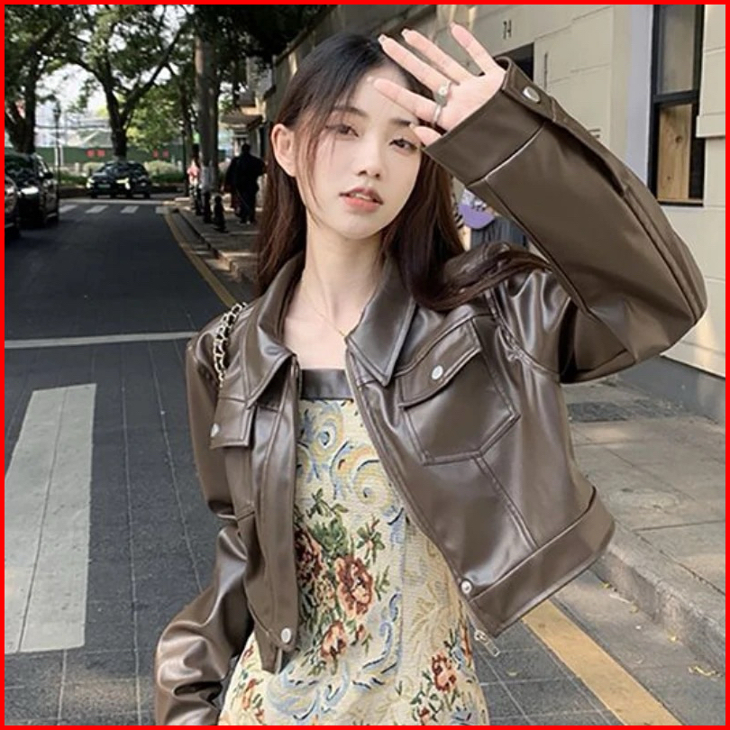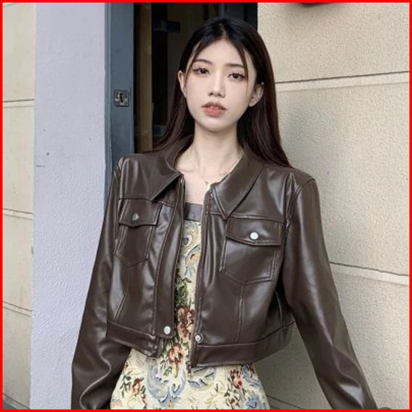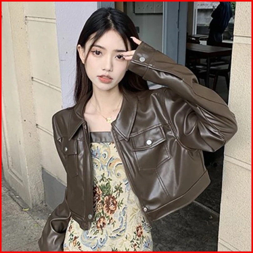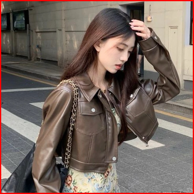 Riseleather.id Jaket Kulit Wanita Luna Crop Korean Style