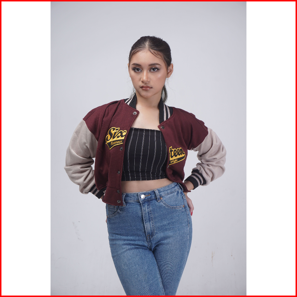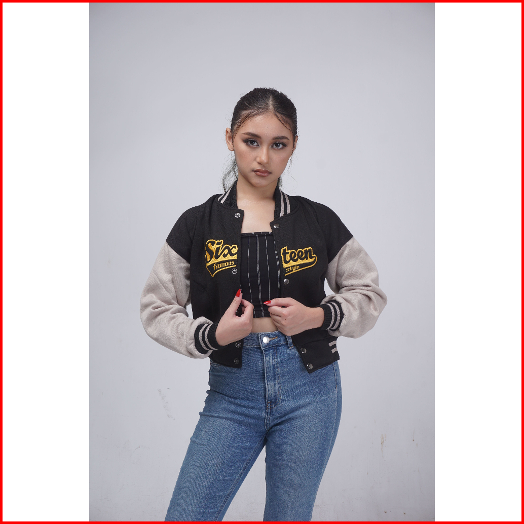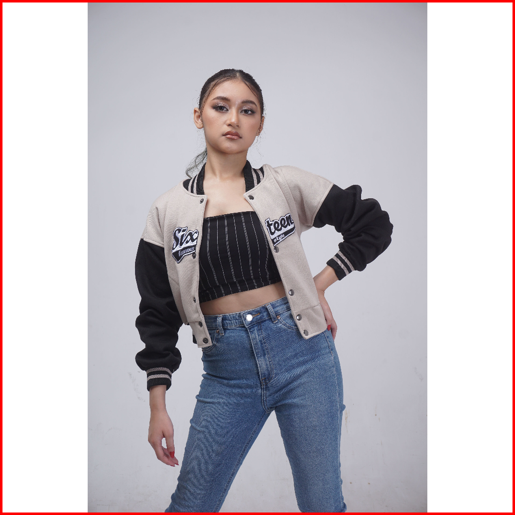 Sixteen Varsity Baseball Crop Kombinasi Full Bordir