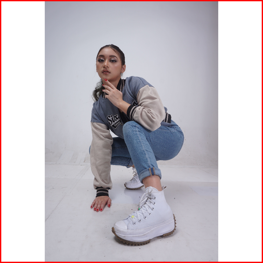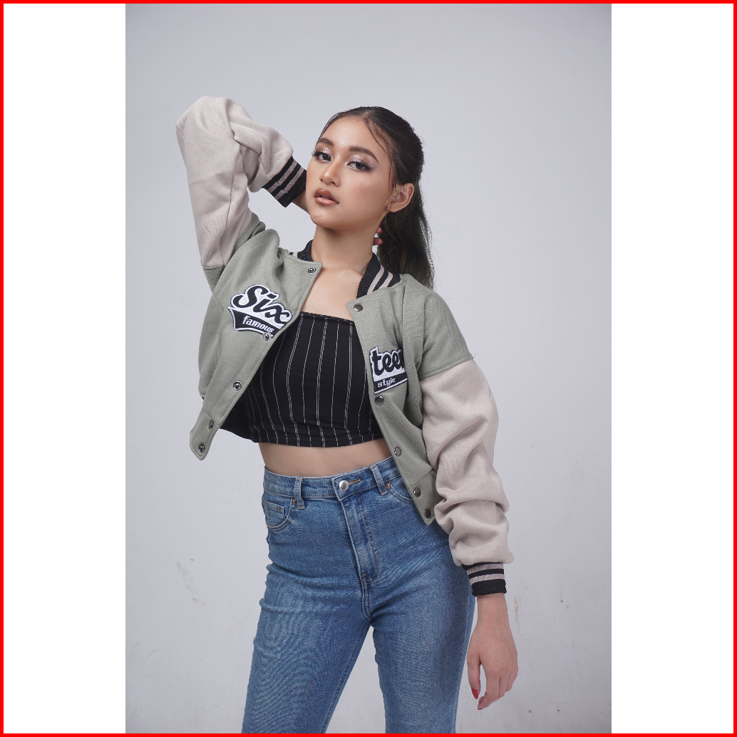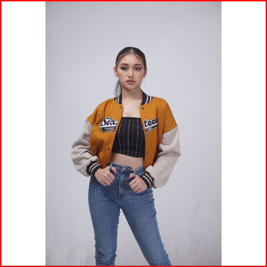 Sixteen Varsity Baseball Crop Kombinasi Full Bordir