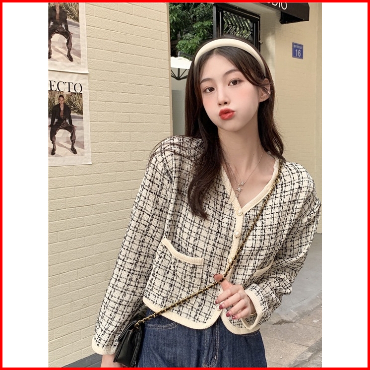 Koilouts Shop Cardigan Vintage Korean Style Terbaru Retro Hitam Jaket Warna Crop