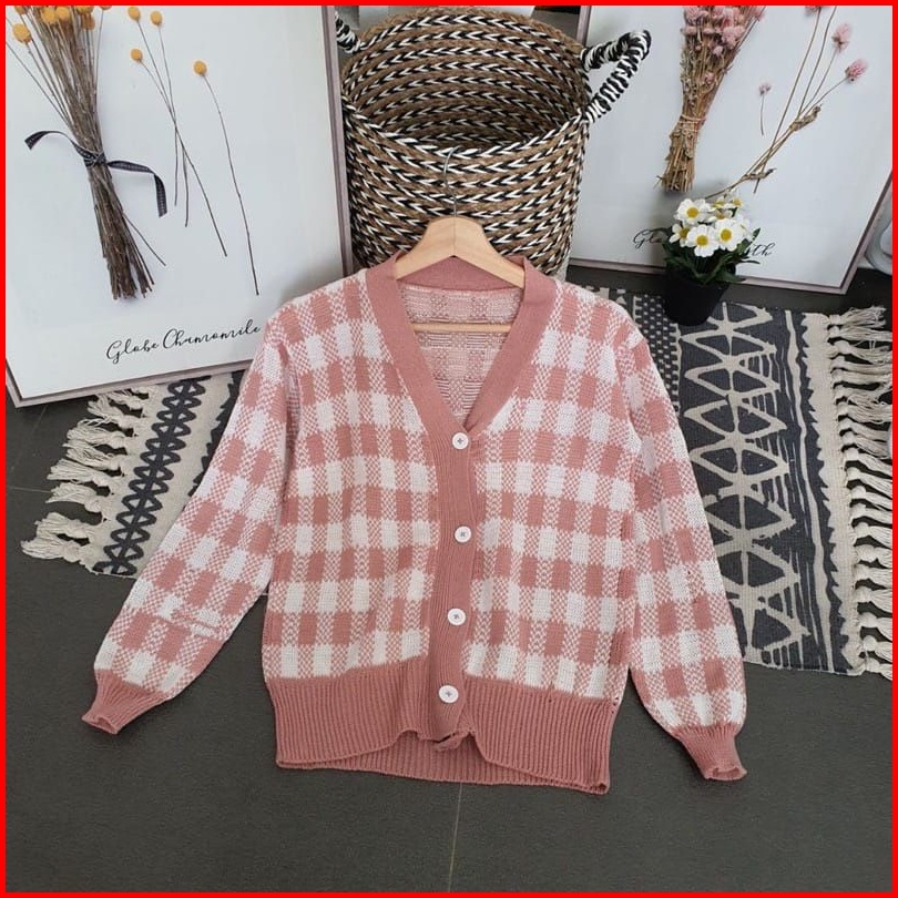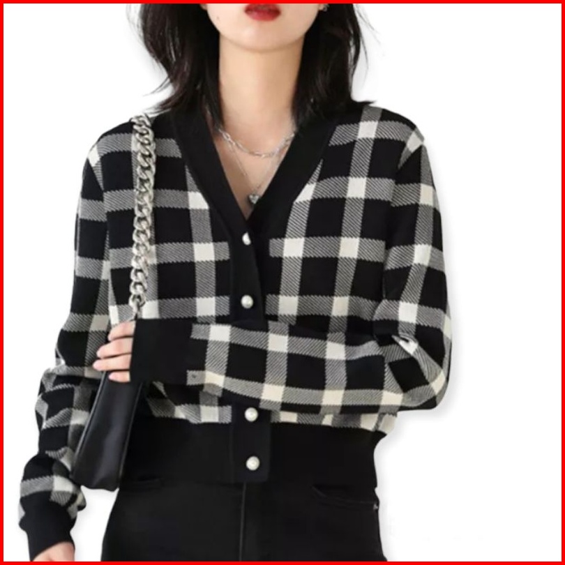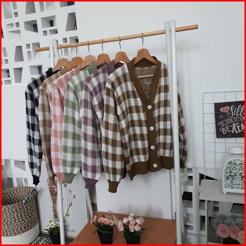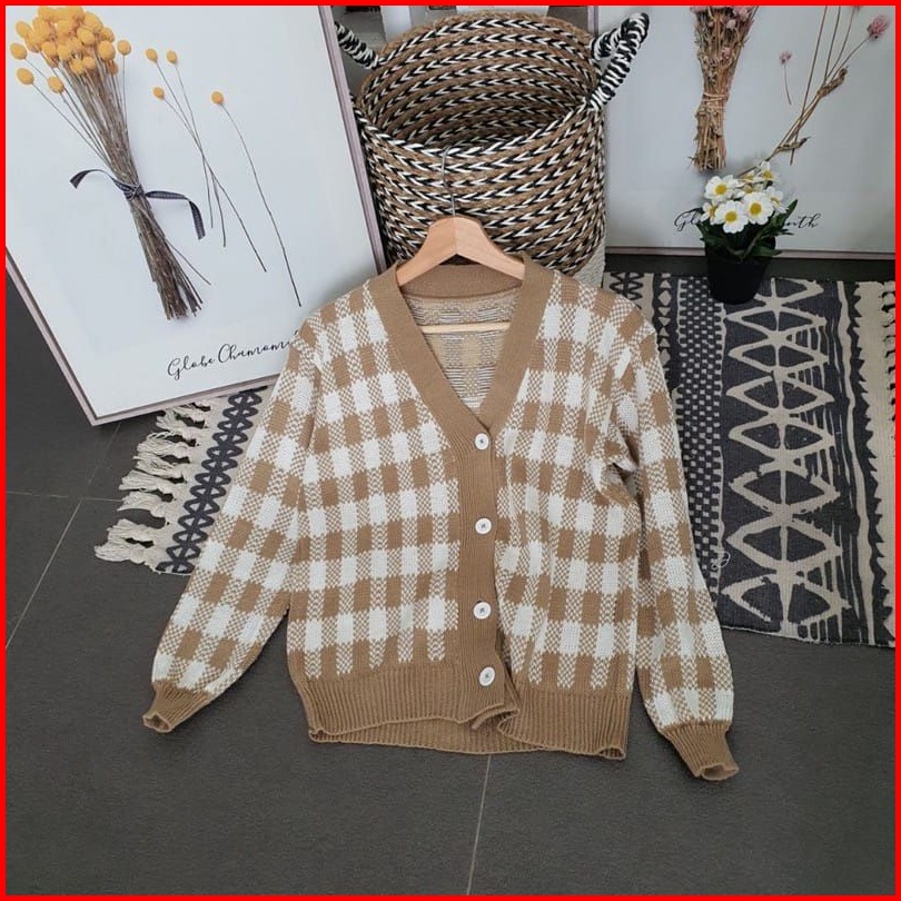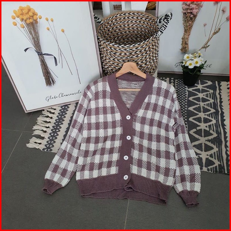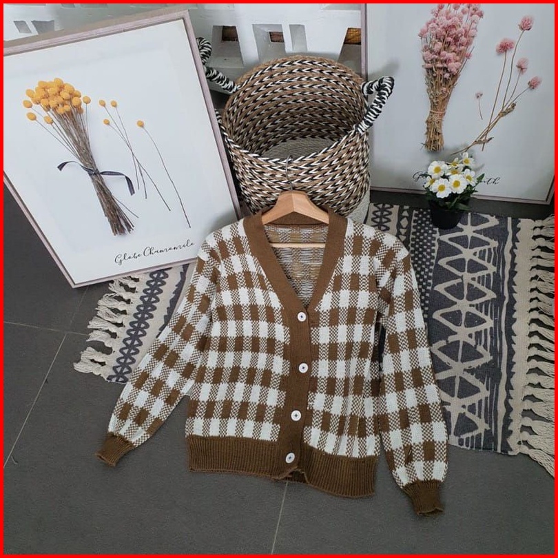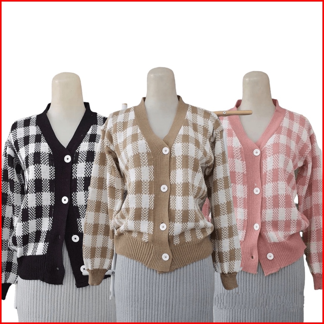 Sn - Cardigan Rajut Kotak Cardigan Catur Korean Style