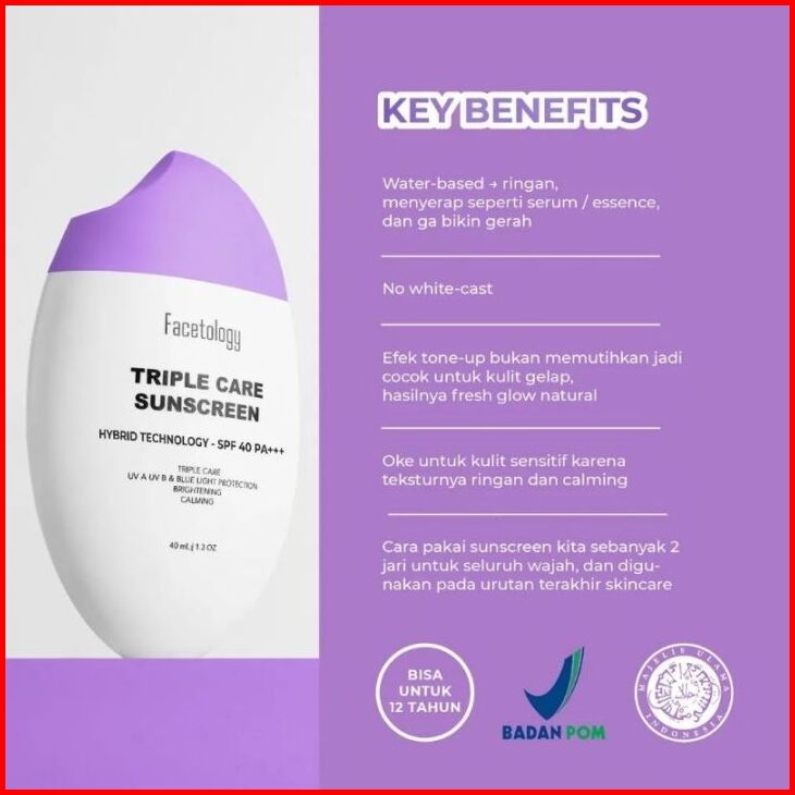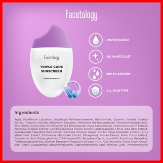 Non Comedogenic Sunscreen Tested Facetology Triple Care Sunscreen Spf 40 Pa 40ml
