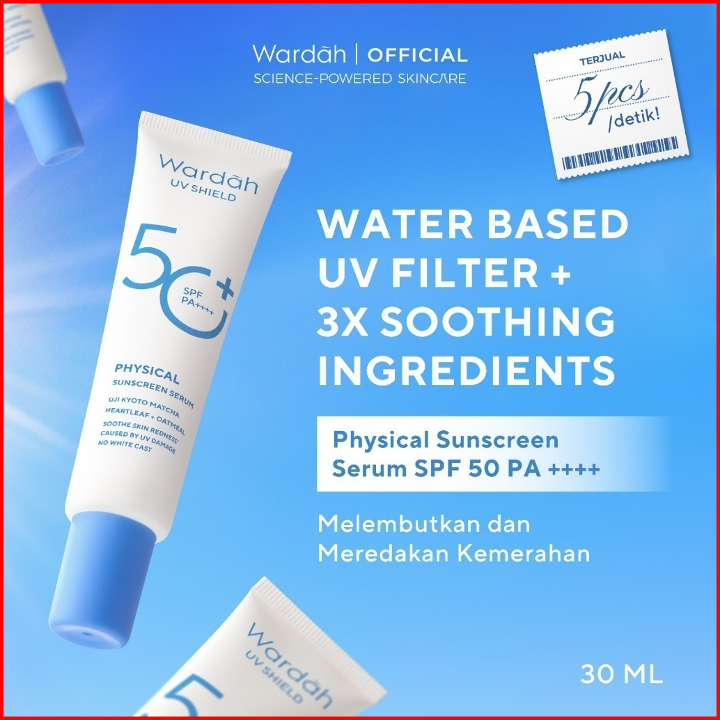 Wardah Uv Shield Physical Sunscreen Serum Spf 50 Pa 30 Ml Sunscreen Wajah Ringan Tidak Whitecast Cepat Meresap Melembutk