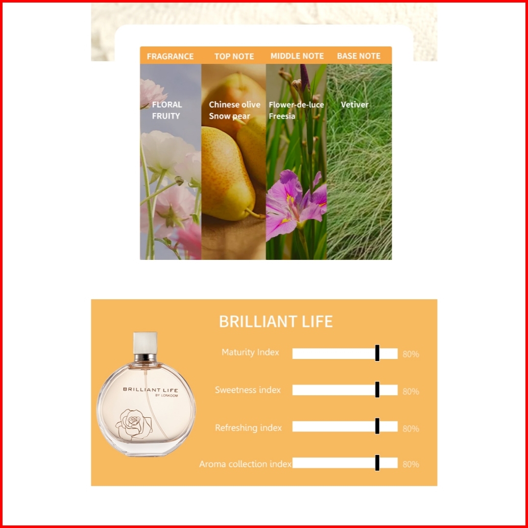 Lonkoom Brilliant Life Parfum Wanita 100ml Edp Aroma Bunga Vanila Manis Jasmine Melati Tahan Lama