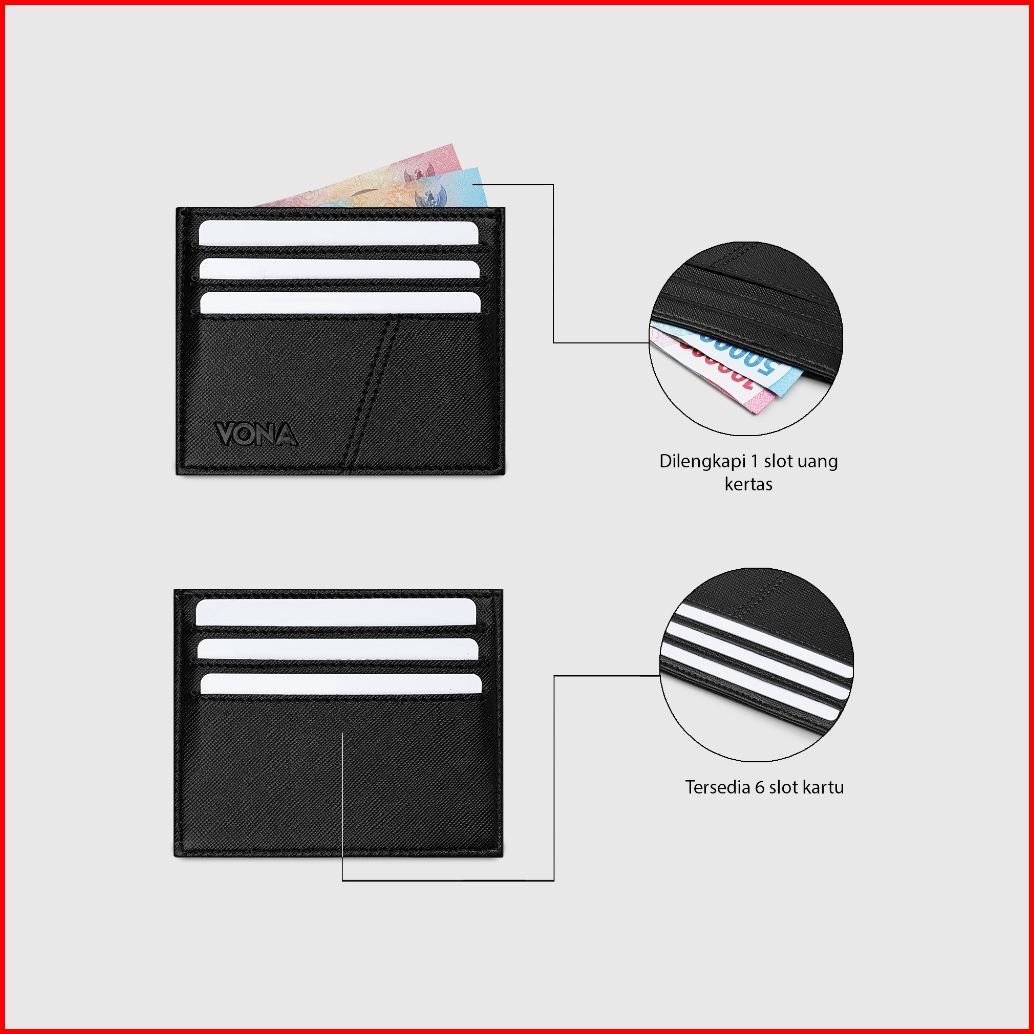 Vona Ziggy Card Holder - Dompet Kartu 6 Slot 1 Slot Uang Kertas Untuk Pria Wanita Unisex
