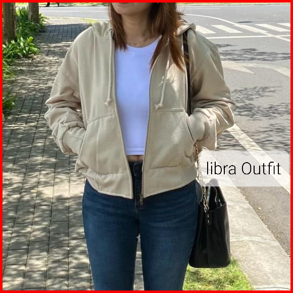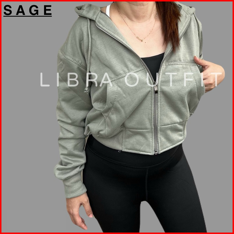 Jaket Crop Zipper Hoodie Wanita Hodie Crop Zip Up Sage By Libra