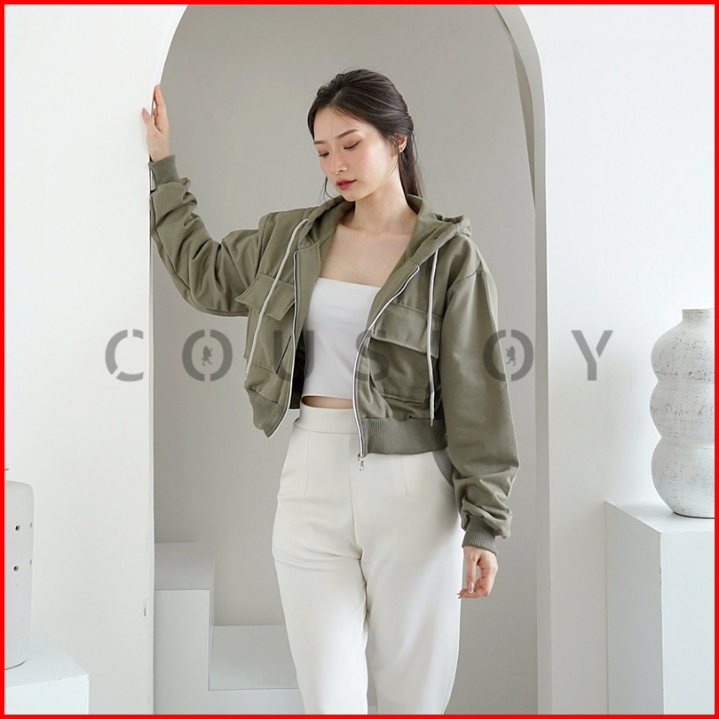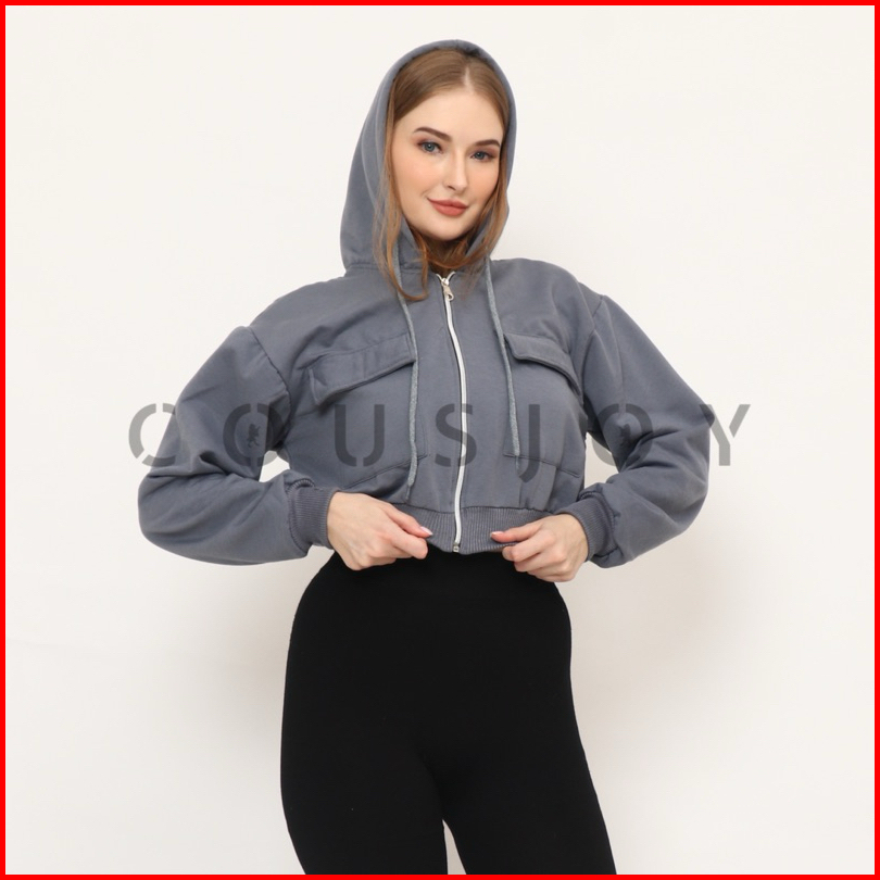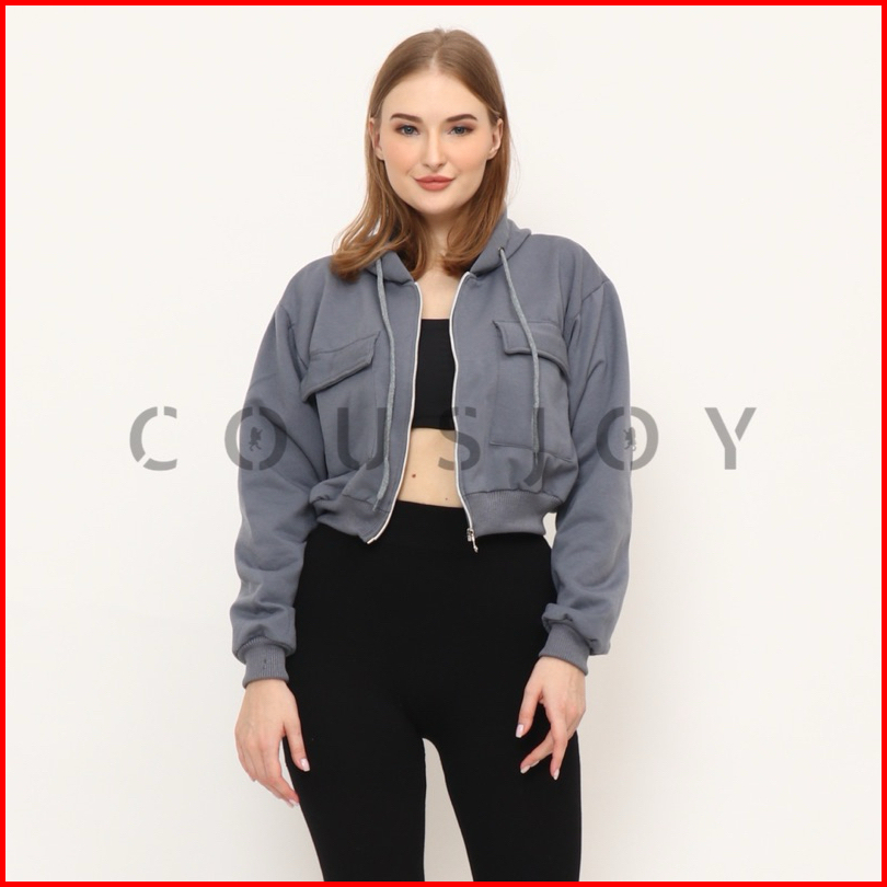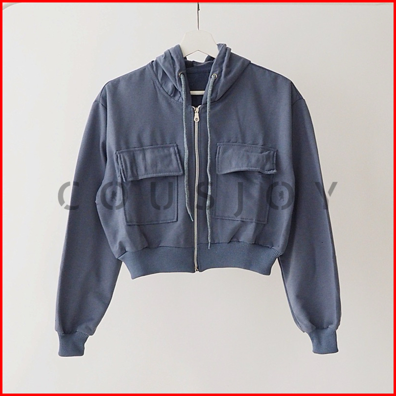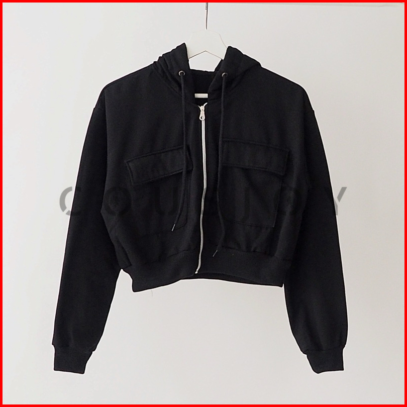 Bestseller Jacket Hoodie Crop Top - Jaket Sweater Polos Zipper Atasan Wanita