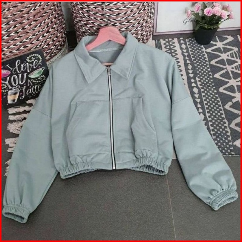 Sweater Vada Collar Jacket Crop - Style Korea - Jacket Varsity Bahan Fleece -