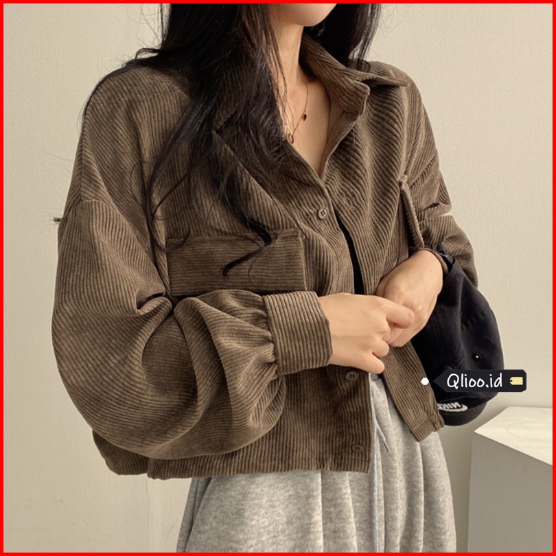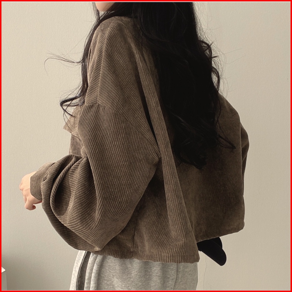 Jaket Korduroi Wanita Kardigan Lengan Panjang Retro Korea Jaket Biru