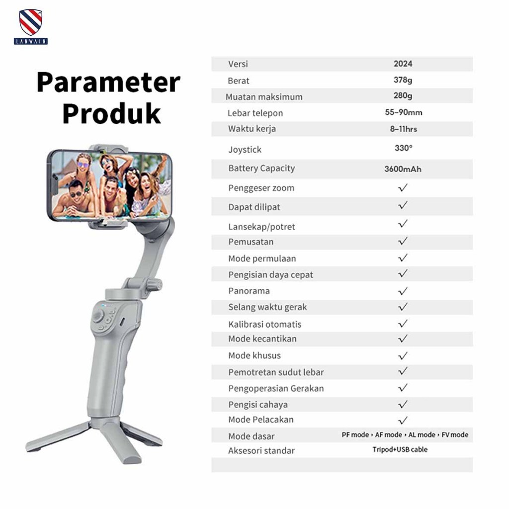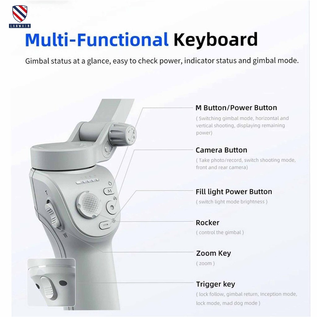 GIMBAL SMARTHONE TONGSIS STABILIZER WITH FILL LIGHT ANTI-SHAKE HANDHELD GIMBAL FOR PHONE VLOG VIDEO AI TRACKING LANWAIN