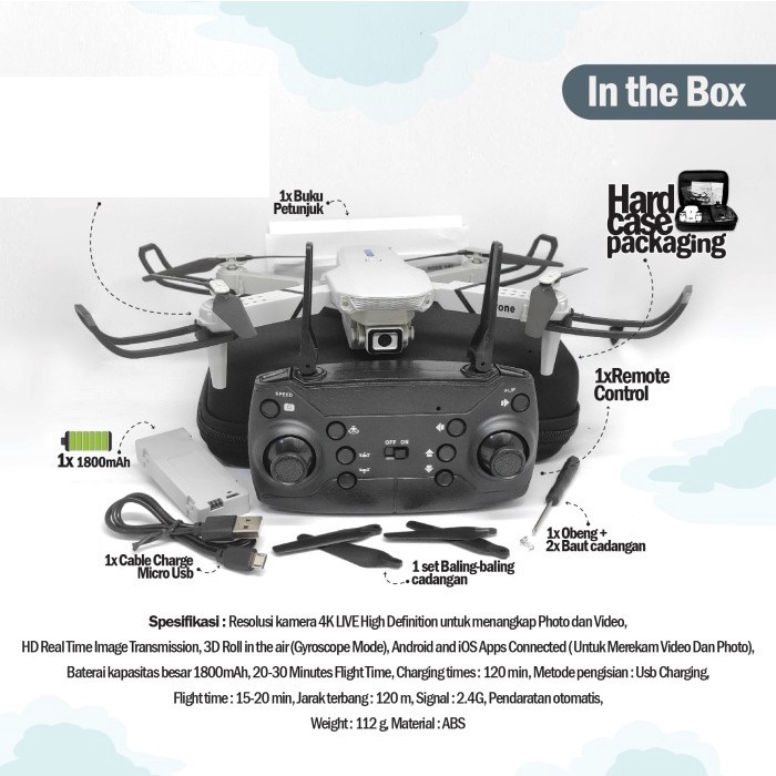 Drone E88pro 4K Ultra HD Foldable Drone Lipat Single Camera