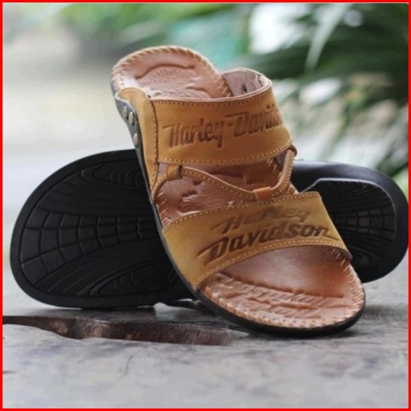 Cuci Gudang Sandal Slop Kulit Sapi Asli Hurley Davidson