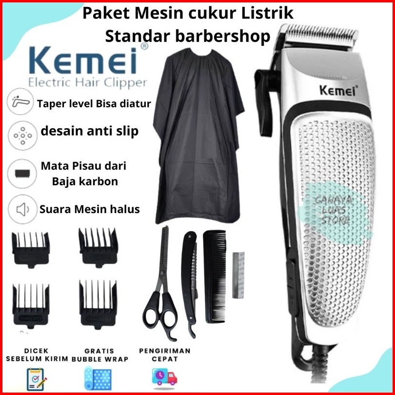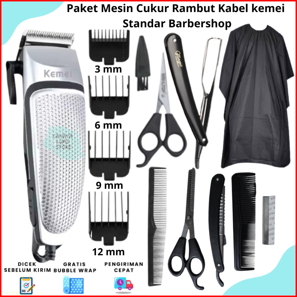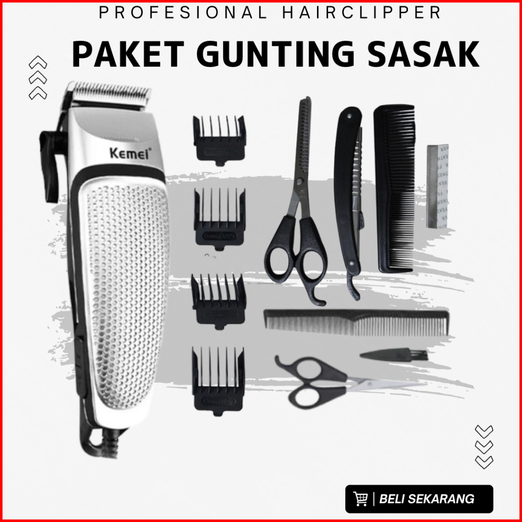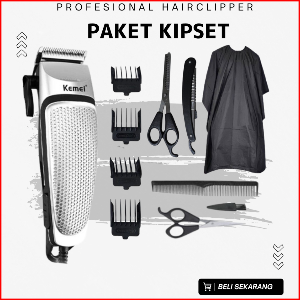 Mesin Cukur Rambut Kemei Profesional Hair Clipper Standar Barbershop Paket Lengkap Alat Cukur Rambut Kemei Gunting Sisir