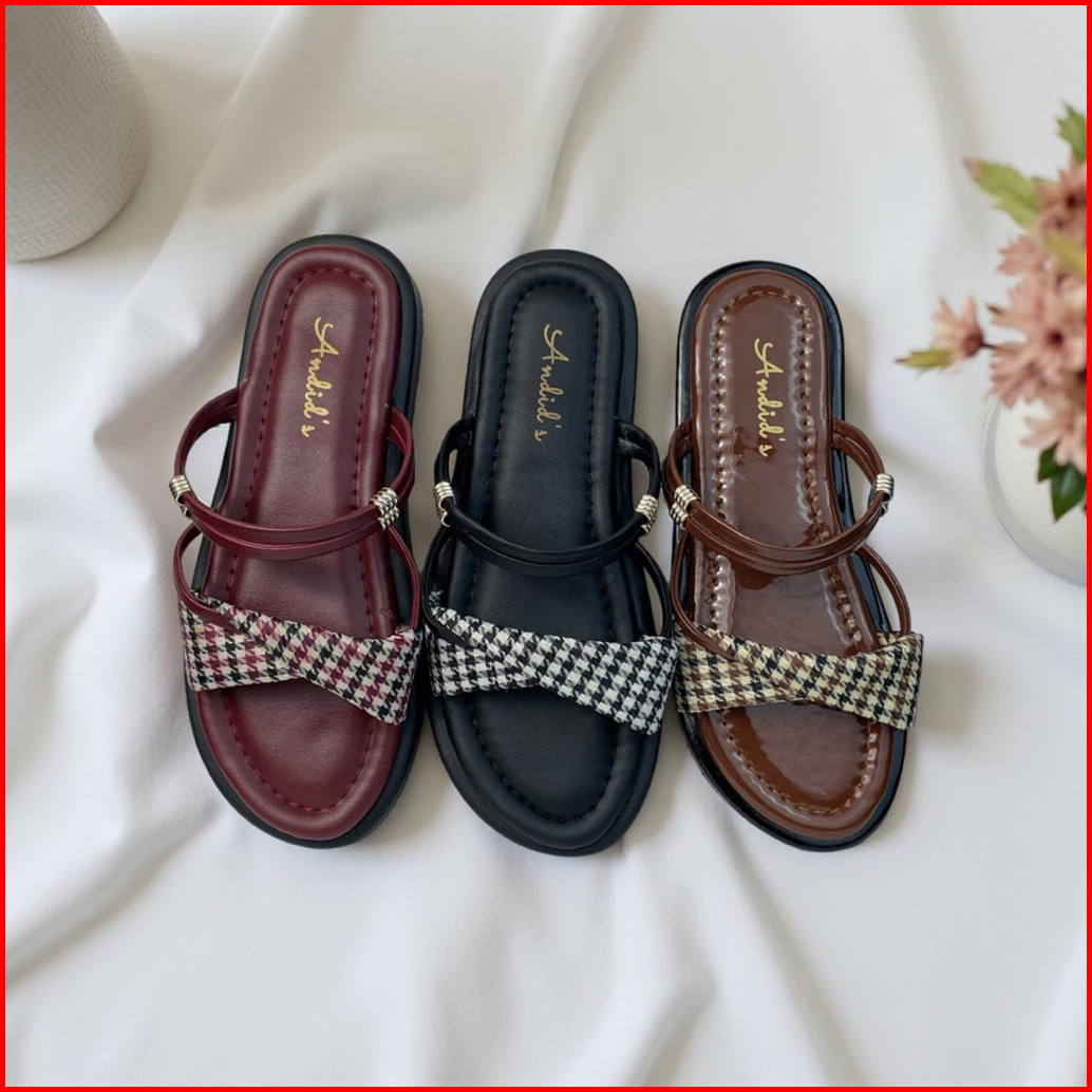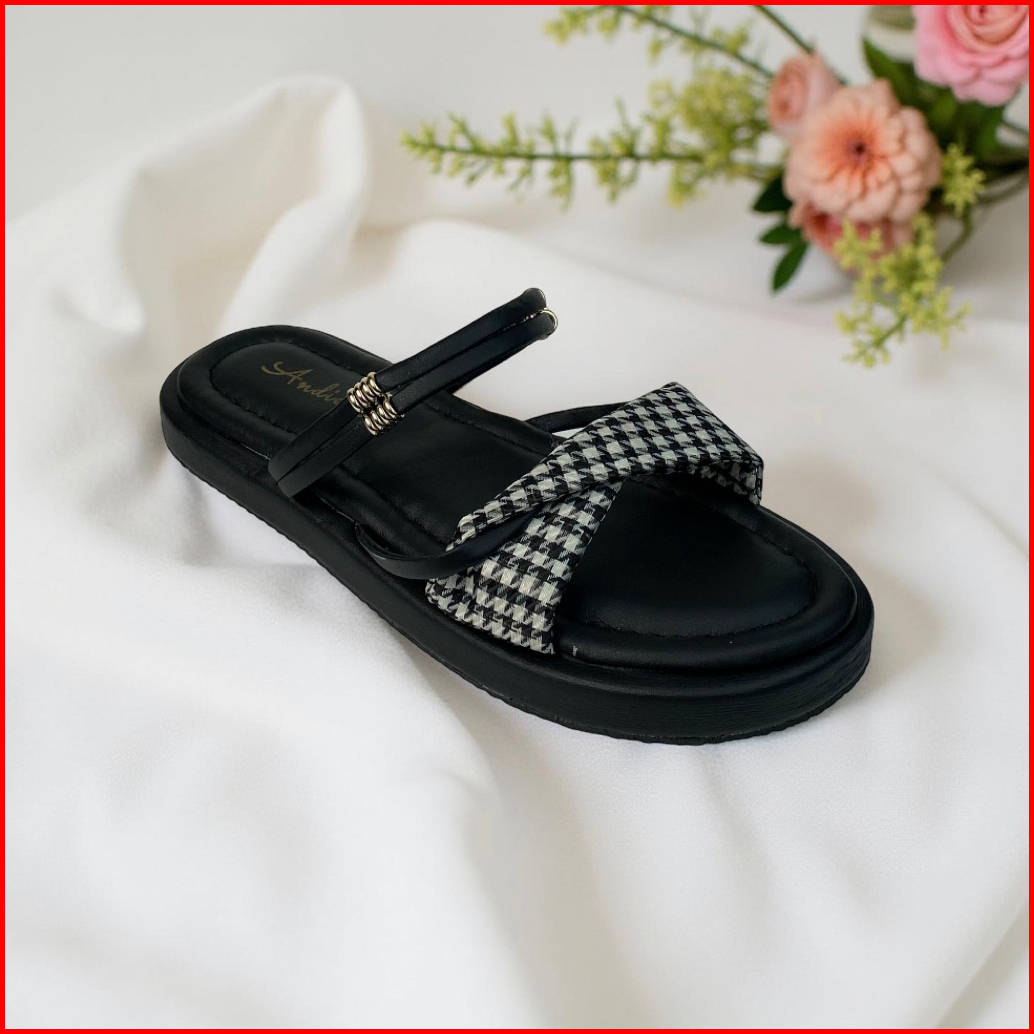 Andid S Sandal Flat Wanita Platform Rajut Gesper Korean Style Terbaru Kekinian Anti Slip