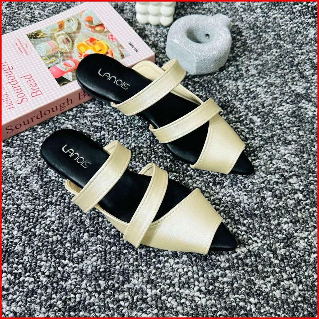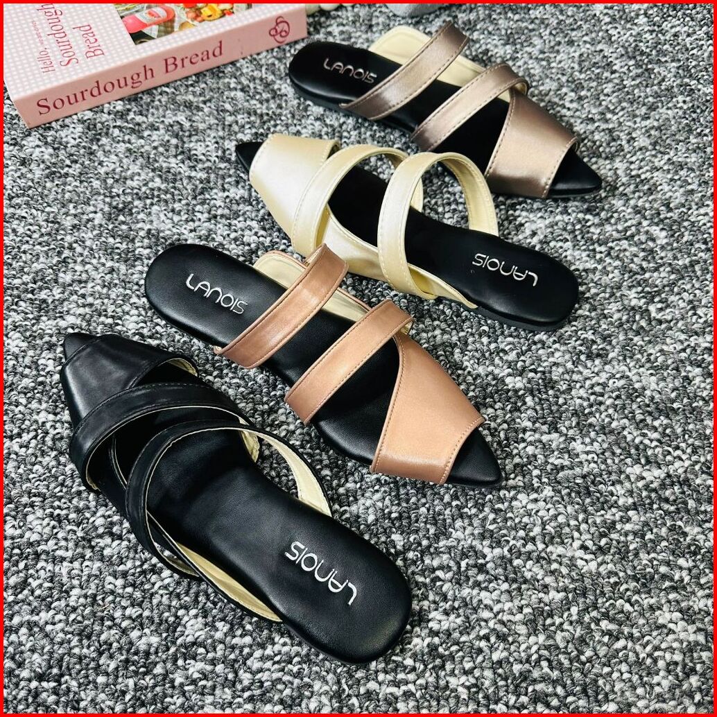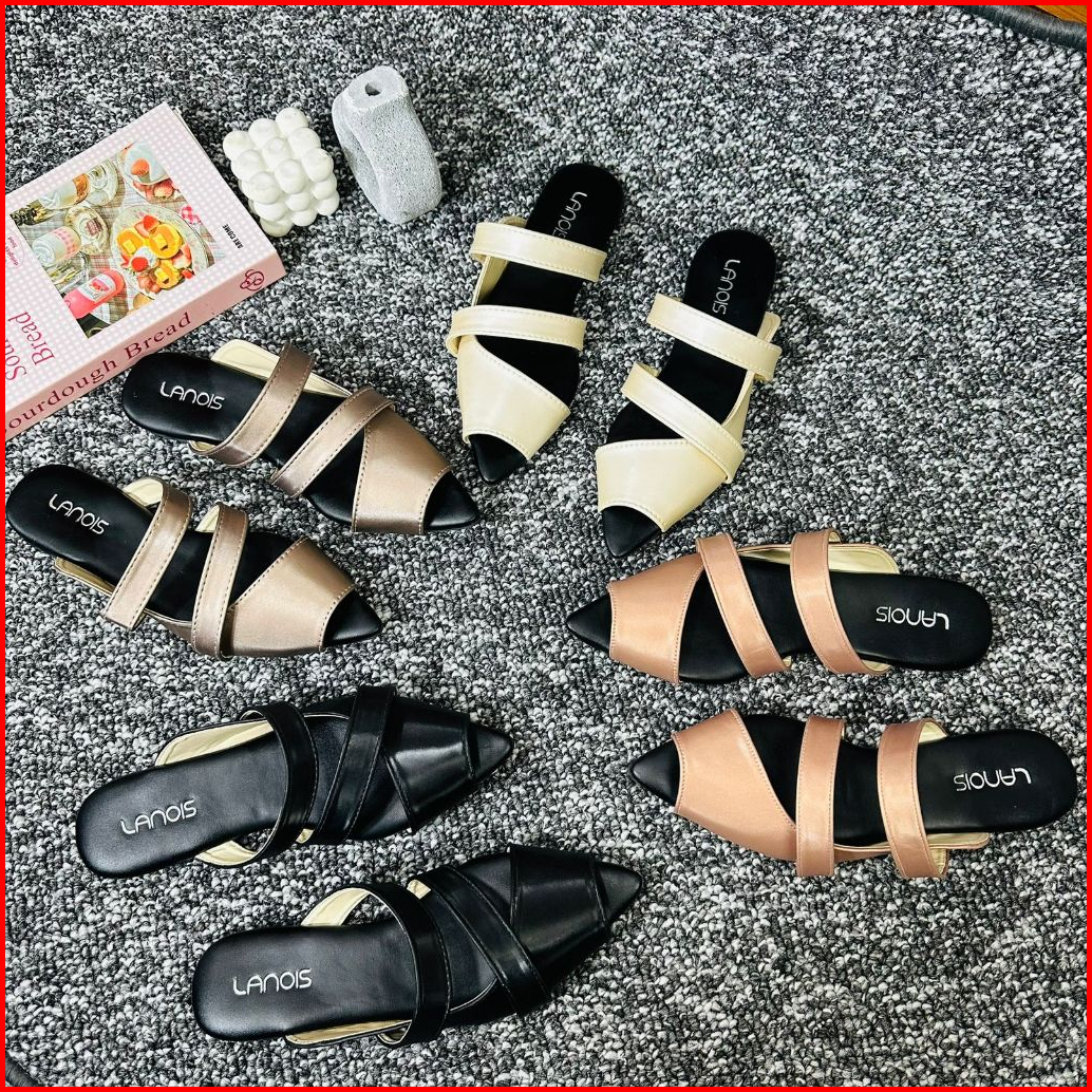 Lanois Sandal Wanita Mules Ranie Flatshoes Slip On Terbaru Sendal Selop Kekinian Hak Datar 1 Cm