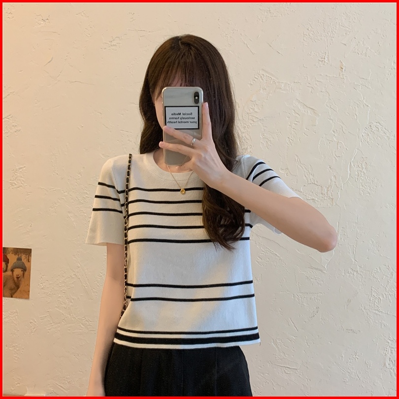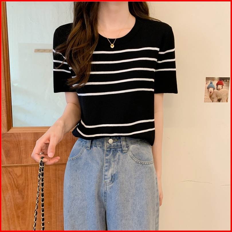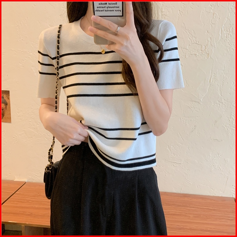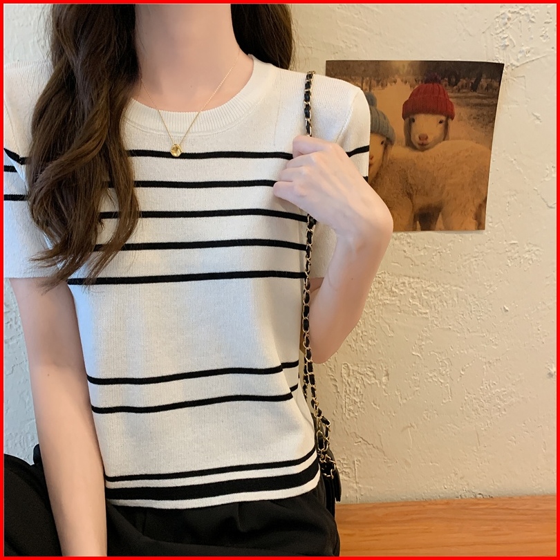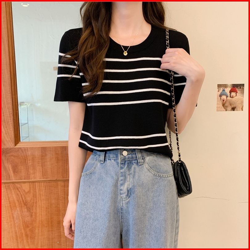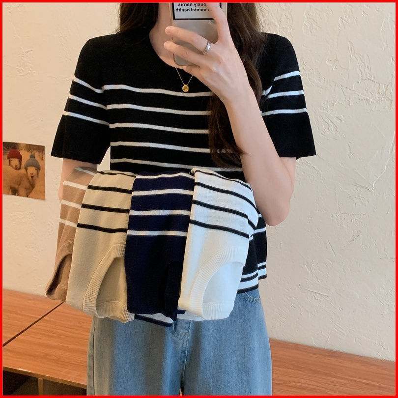 Ship Locally Kaos Rajut Korean Style Stripe Kaos Atasan Wanita Baju Crop Korea Baju Pendek Wanita Crop To Yiyoyi
