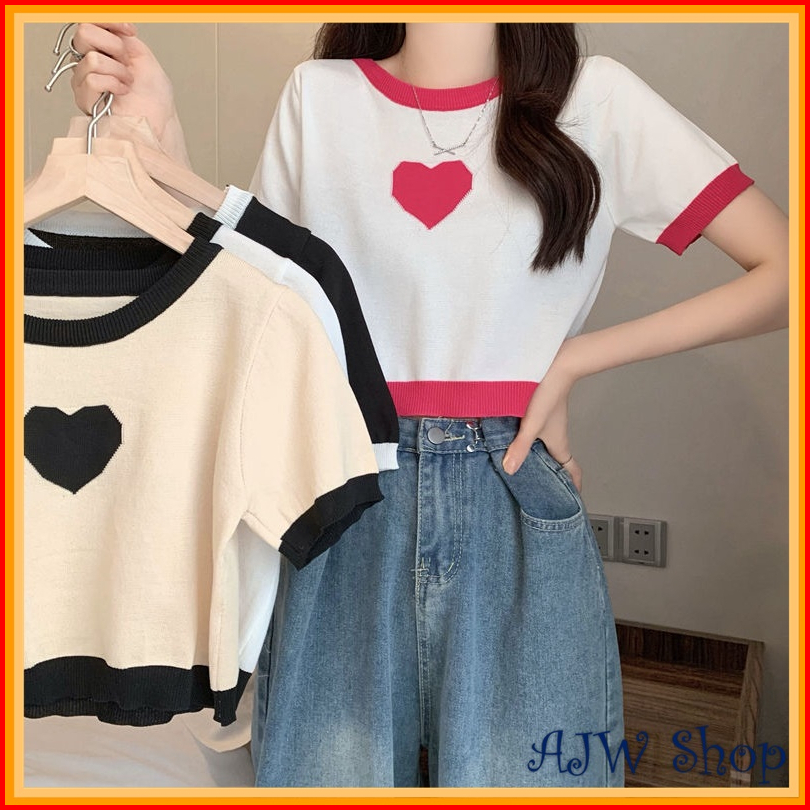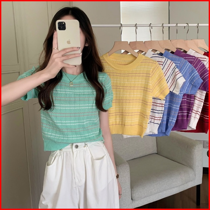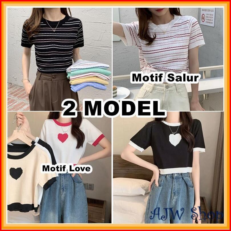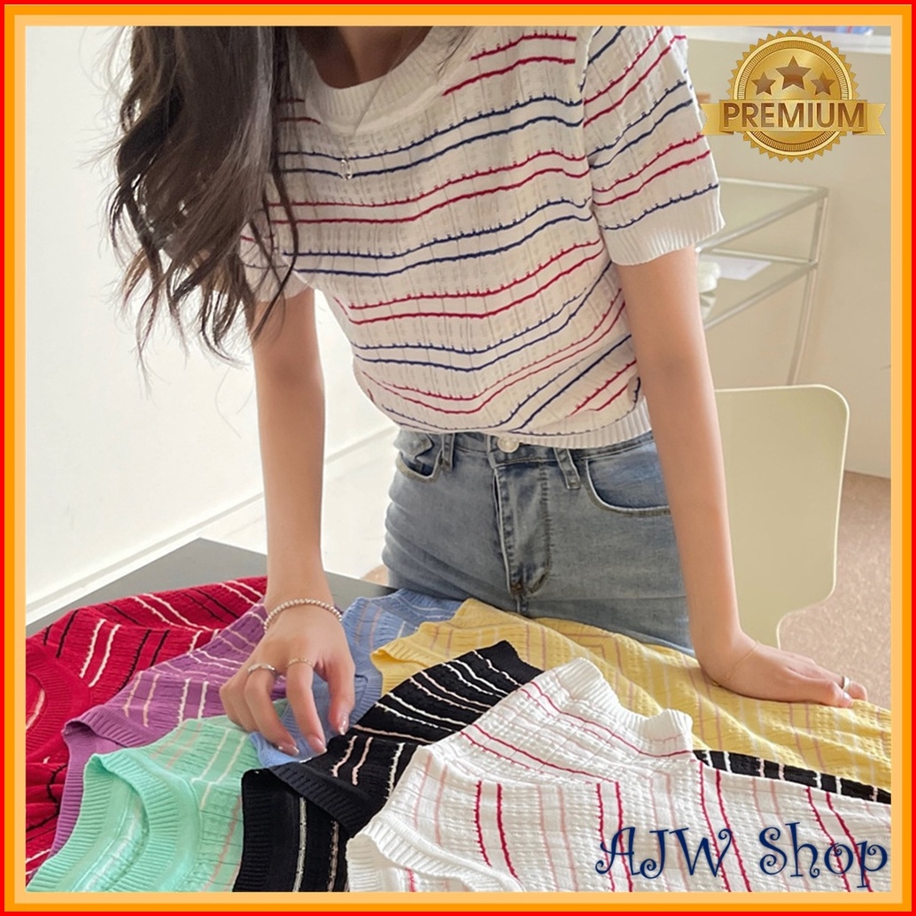 Ajw Atasan Wanita Import Rajut Korean Style Premium Lengan Pendek Hu Hab Atasan Wanita Kekinian Korean Style Impor Lenga