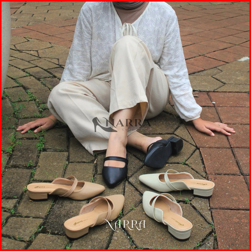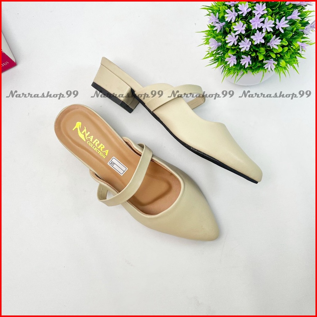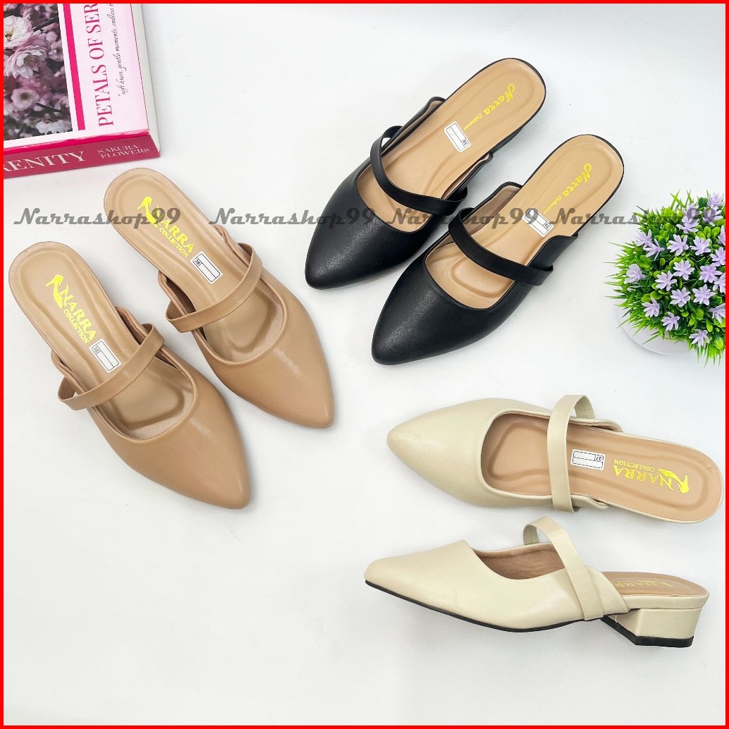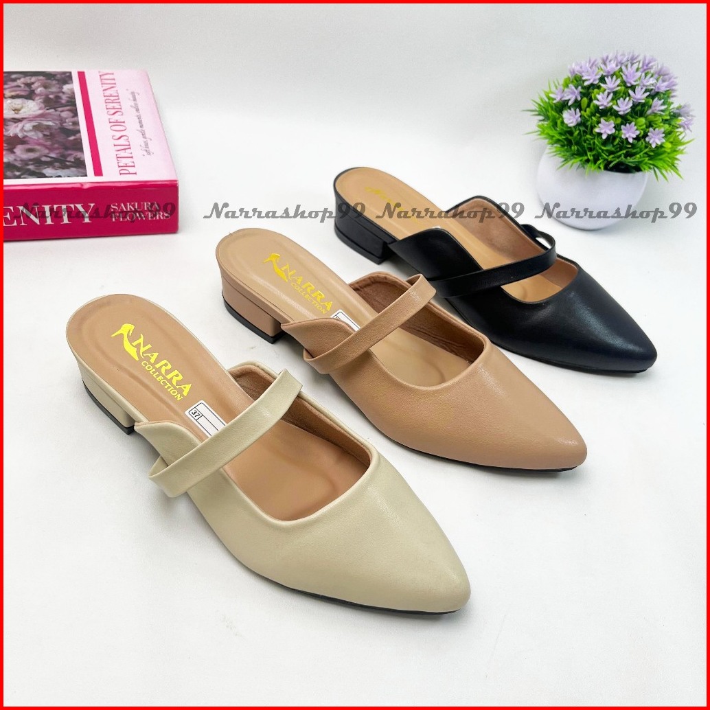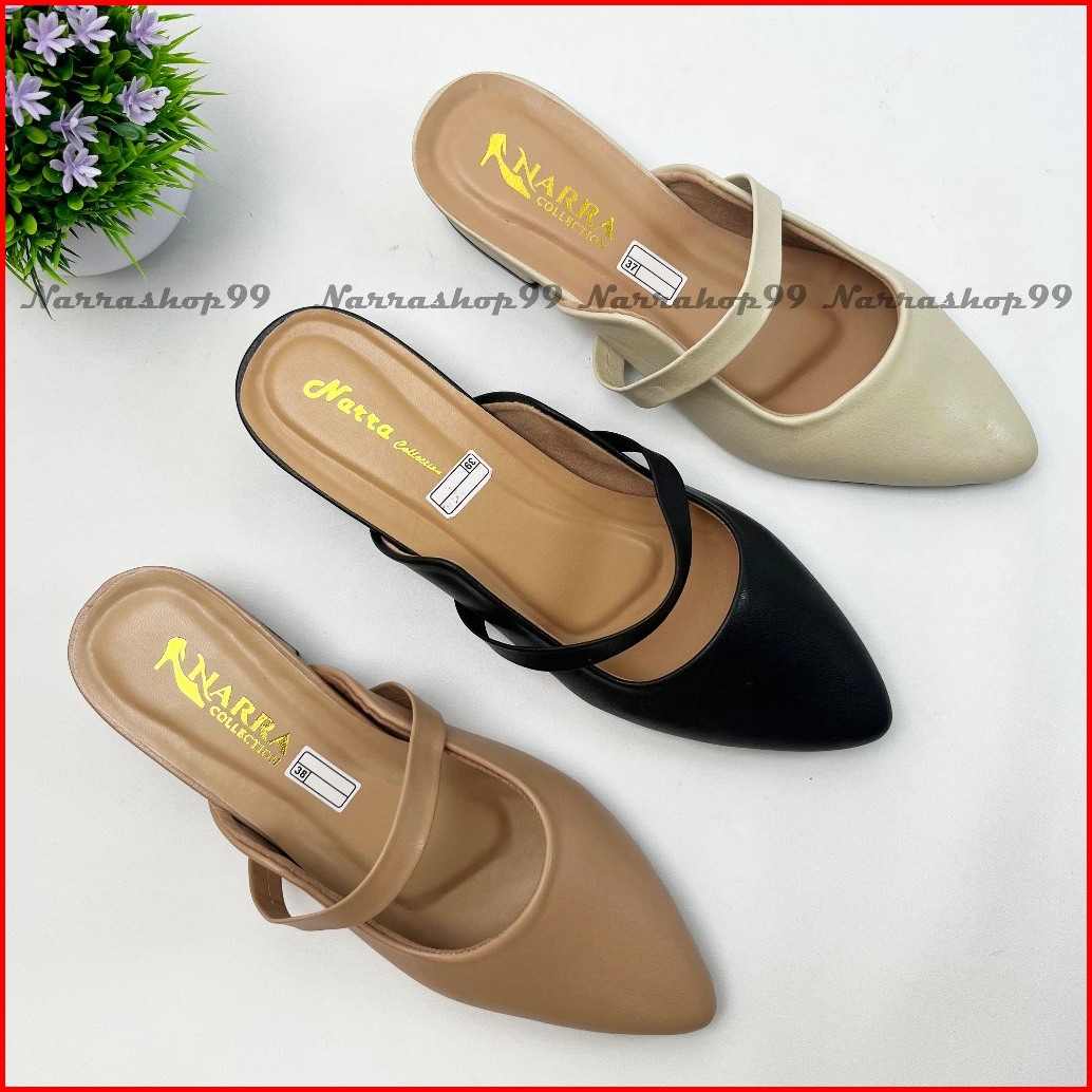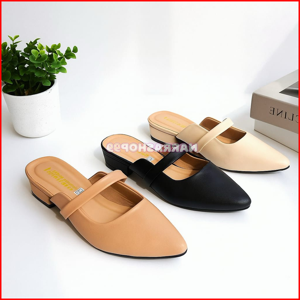Sepatu Sandal Wanita 3cm Mules Hak Model Kekinianan Flatshoes Wanita Murah