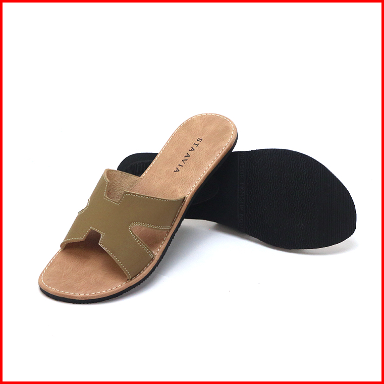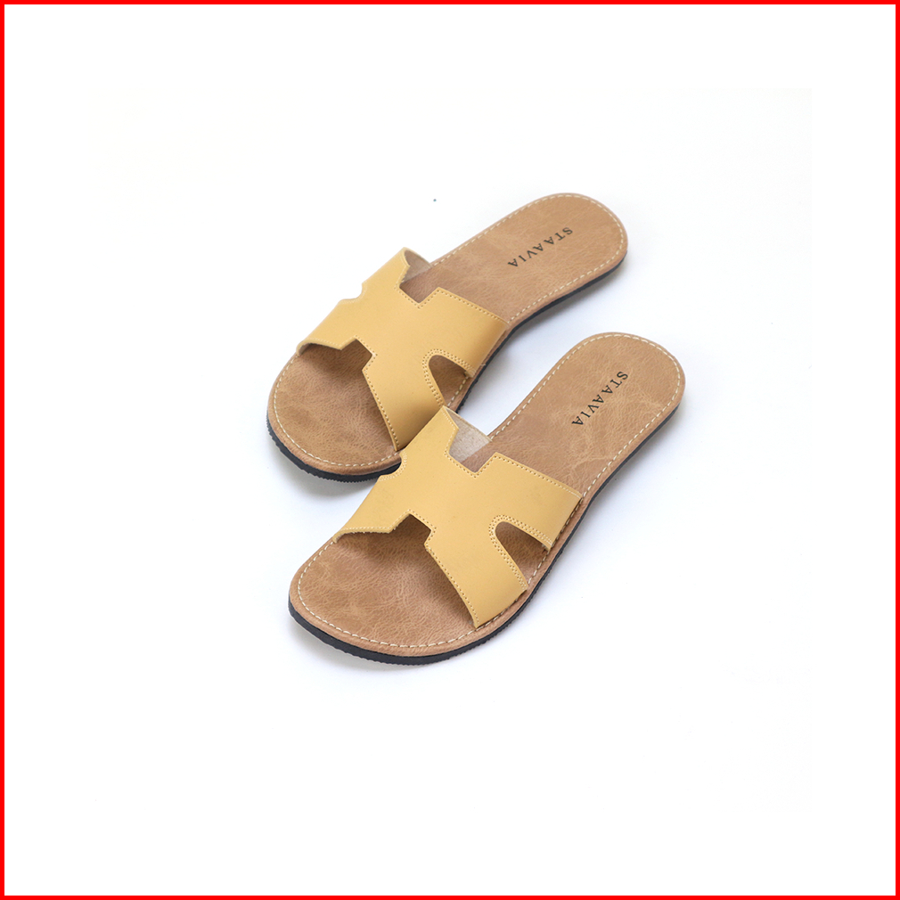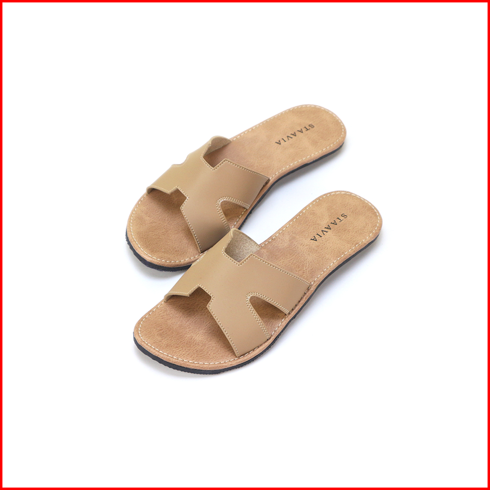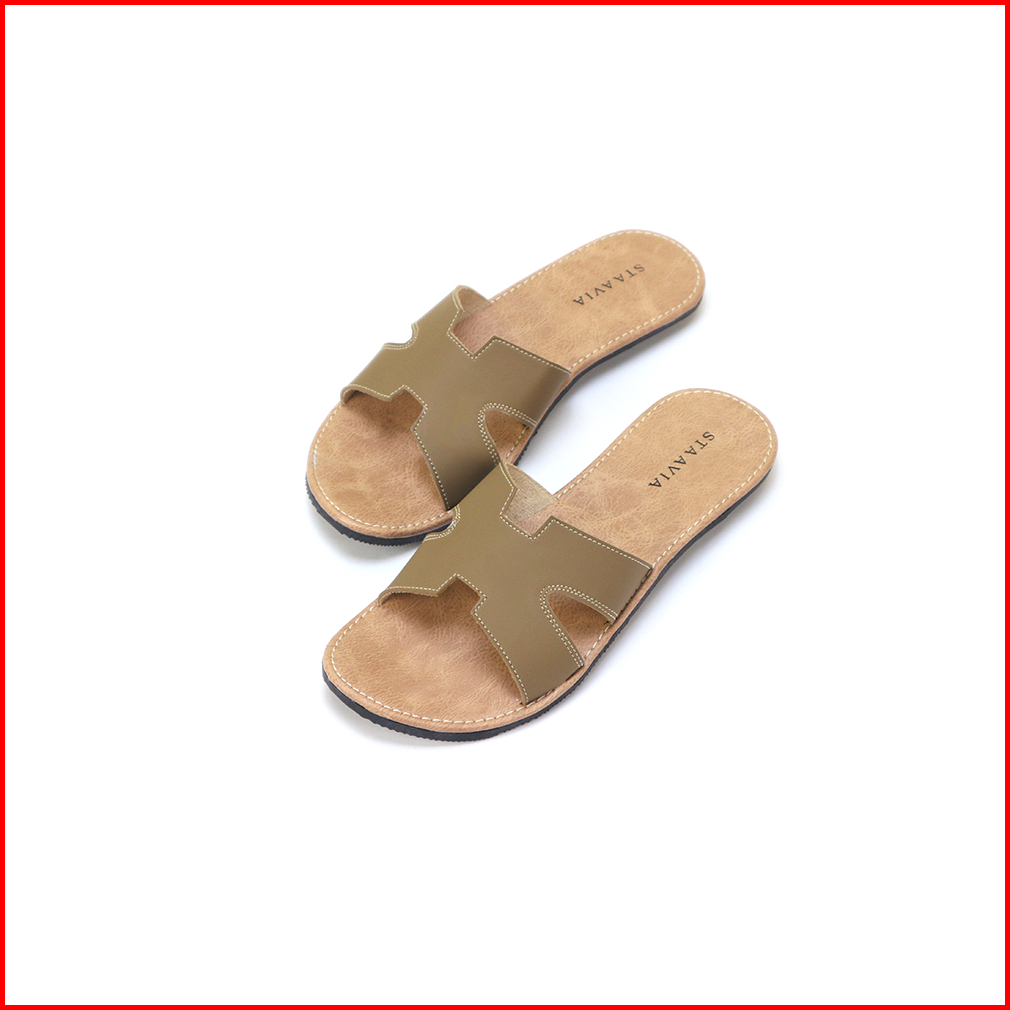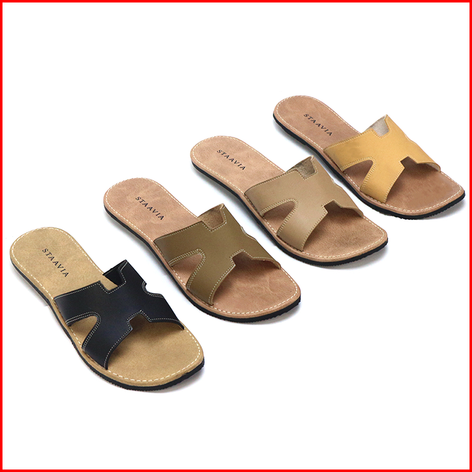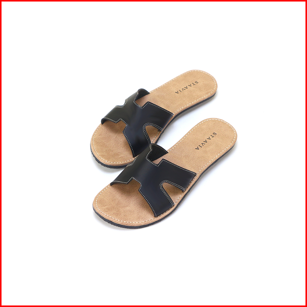Staavia Sandal - Clara Sandal Wanita Kulit Sintetis Alas Karet Nonslip Model H Sandal Flat Wanita