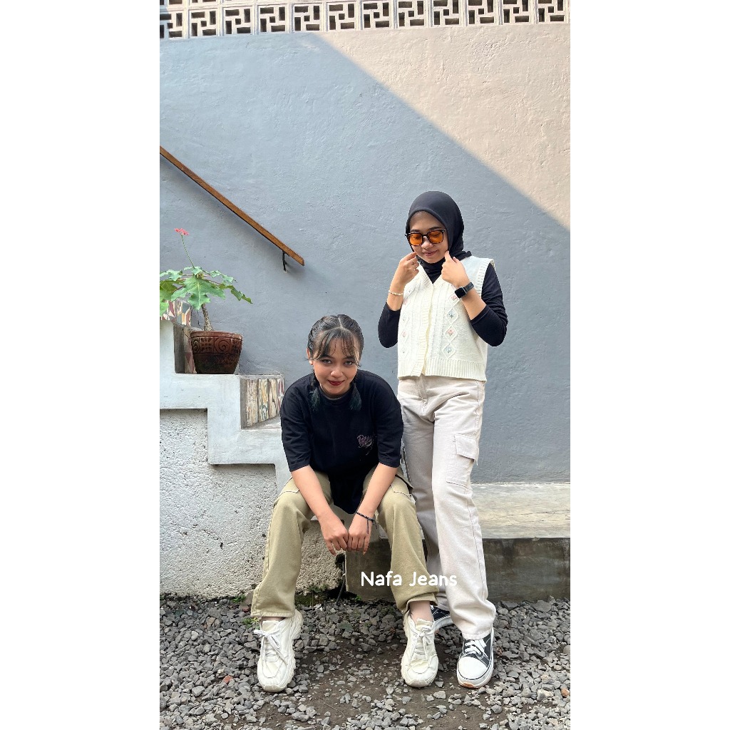 (Gratis Ongkir) Highwaist Cargo Loose Jeans- Cargo Baggy Highwaist Hands Up Jeans Vol2