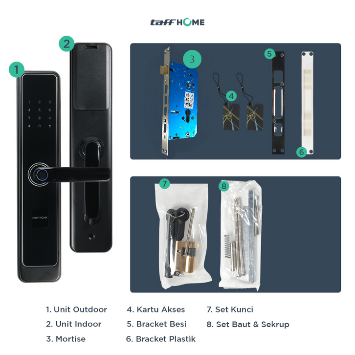 TaffHOME Smart Door Lock Fingerprint Password Card RFID Alarm - XR24