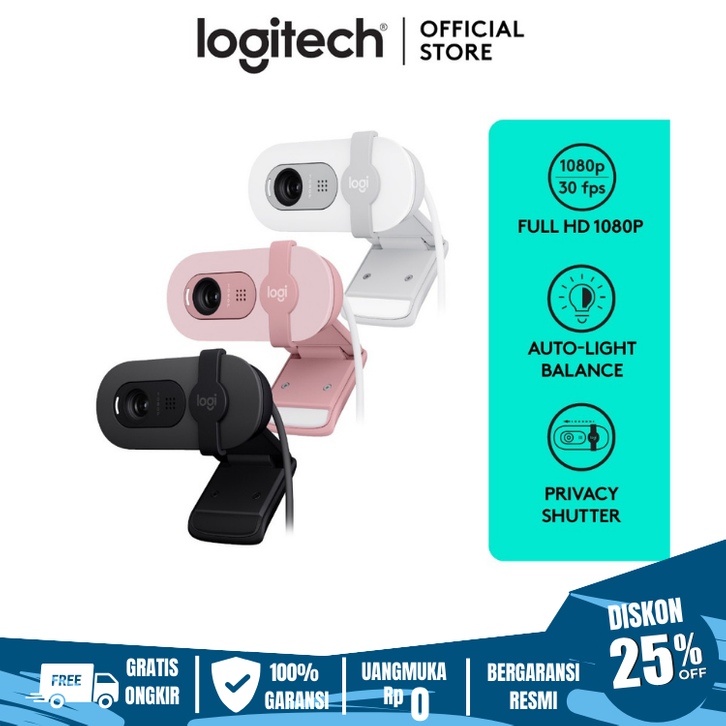 Webcam Logitech Brio 100 Full HD, Built in Mic, Auto-Light Balance, Privacy Shutter
