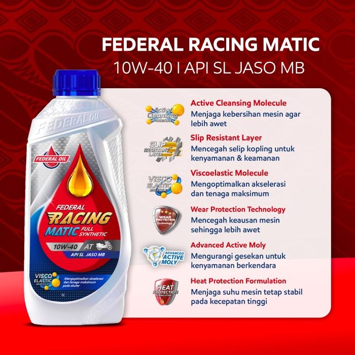 FEDERAL RACING MATIC 10W-40 1L- Oli Motor Matic (2 Botol) oli motor matic