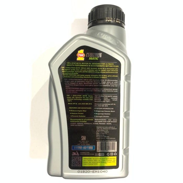 OLI MOTOR MATIC TOP 1 SMO ESTER EVOLUTION MATIC SAE 10W40 800ML ORI oli motor matic