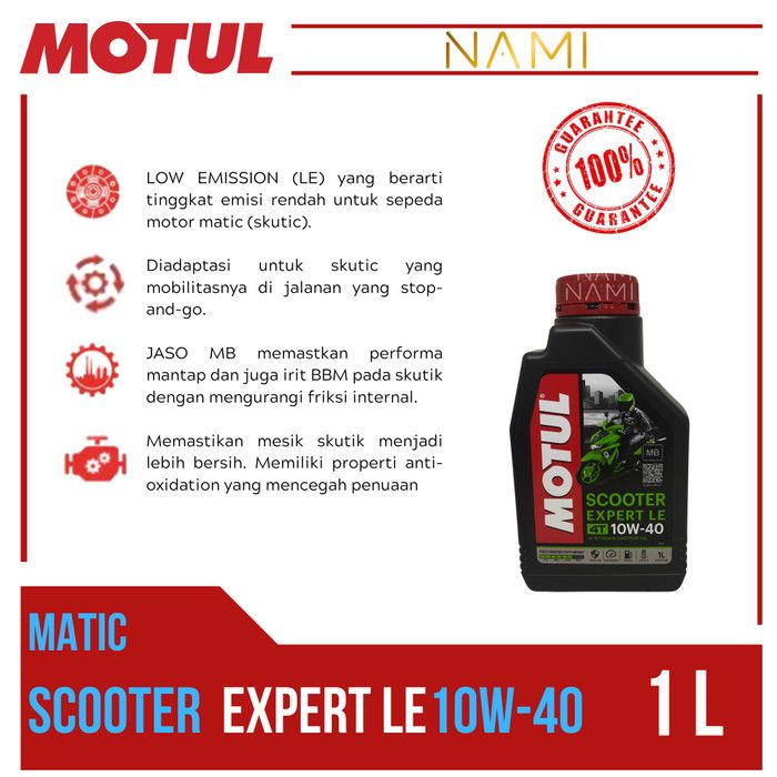Oli Mesin Motor Matic Motul Scooter Expert LE 4T 10W40 (1L) Original oli motor matic