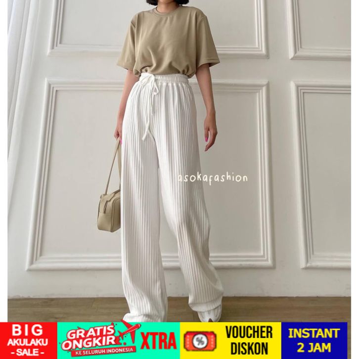 TERLARIS ASOKA Lyra Pants 1106 - Celana Kulot Knit Rib Panjang - Highwaist Pants Women