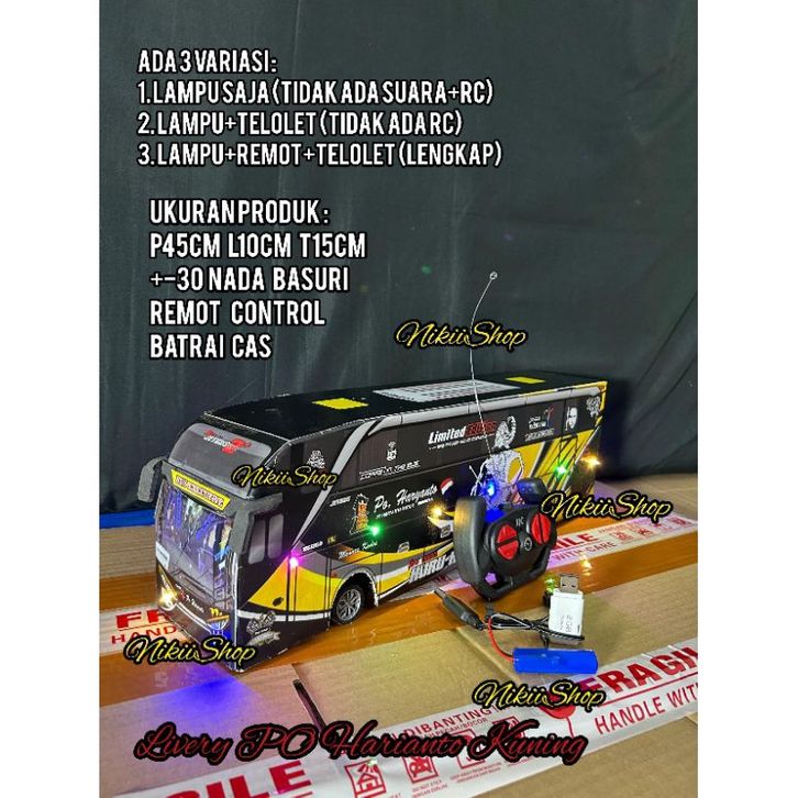 Mobil Bus Telolet Miniatur Bus Telolet Basuri Remot Control Full Lampu