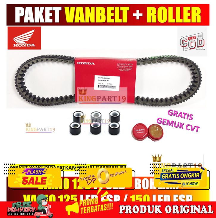 MOTOR PAKET VANBELT + ROLLER VARIO 125 CBS TECHNO VARIO 125 150 LED ESP GRATIS GEMUKK CVT VAN BELT ROLLER KZR K35 K36