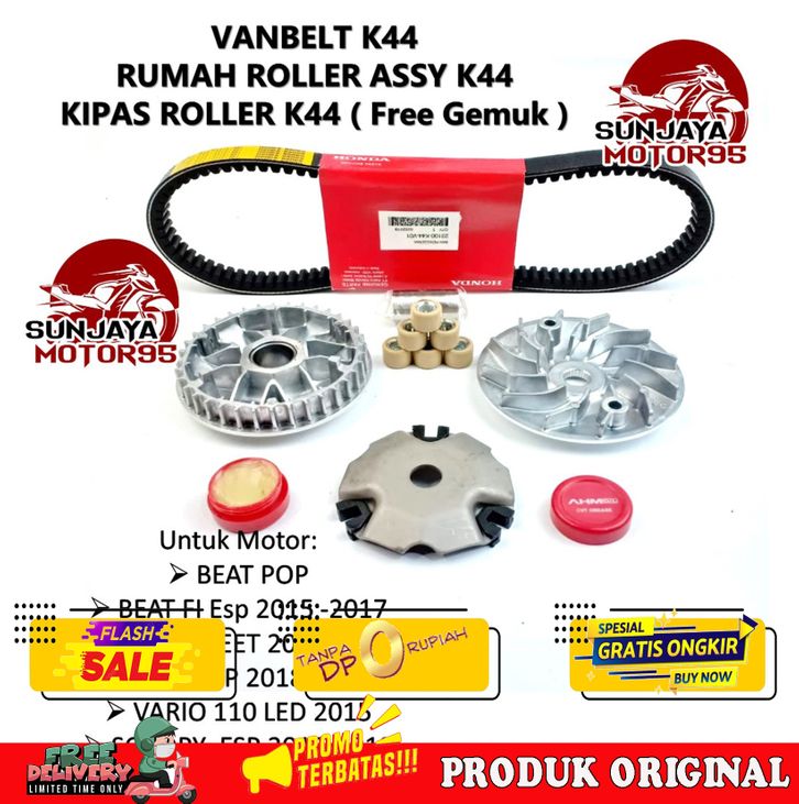 MOTOR PAKET RUMAH ROLLER SET KIPAS ROLLER CVT + VANBELT BEAT POP - BEAT STREET - VARIO 110 LED ESP - SCOOPY ESP K44