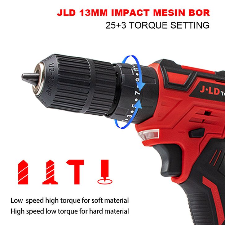 JLD 13mm mesin bor impact baterai brushless bor cas murah 2baterai 48V bor tangan baterai bor impact baterai jld bor bes