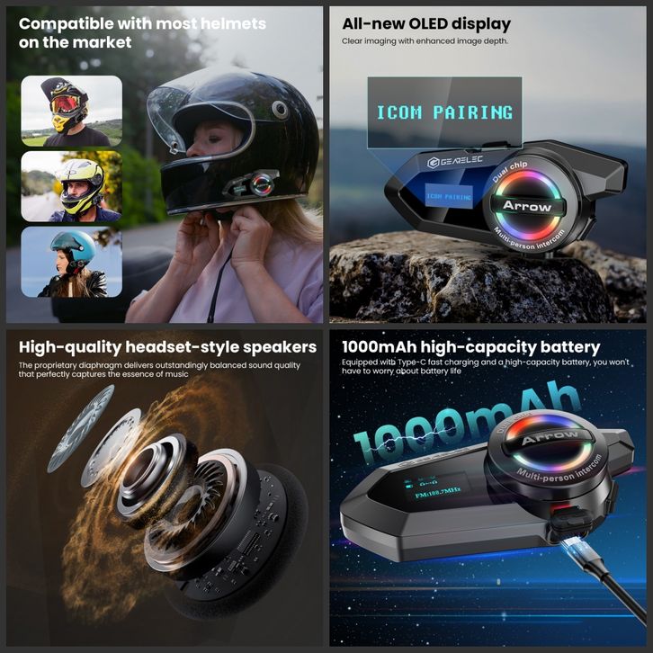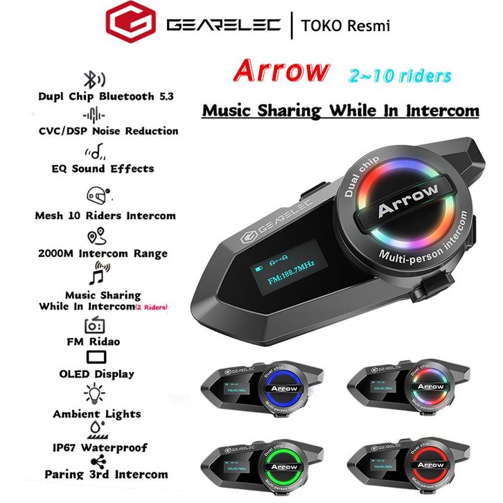 [Star] Intercom helm waterproof EARELEC arrow Bluetooth 10riders mendukung interkom saat music sharing