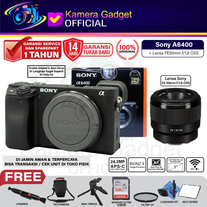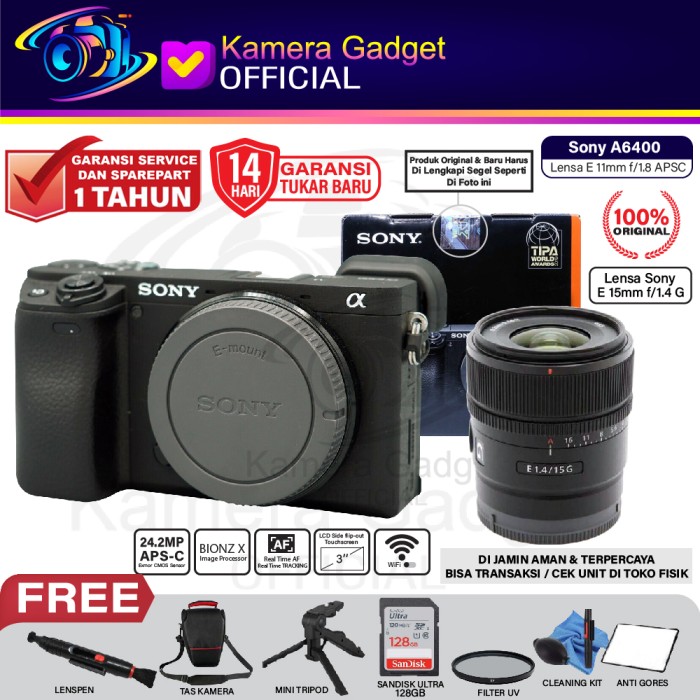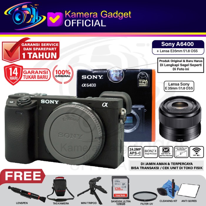 SONY ALPHA A6400 BODY WITH E 35MM F1.8 - FE 50MM F1.8 - E PZ 18-105MM - BODY ONLY, PAKET STANDARD