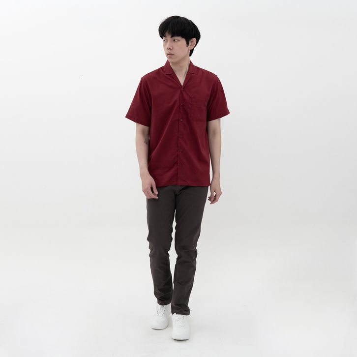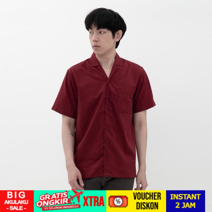 TERLARIS M231 Kemeja Pria Basic Polos Hawaii Oversized Pendek Maroon 2190G