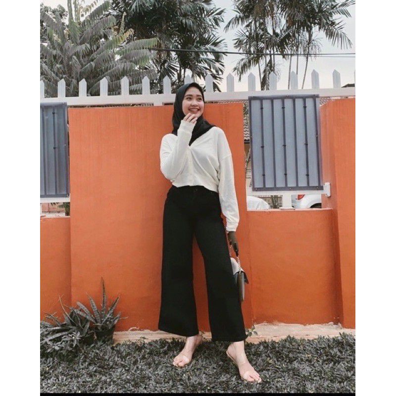 (Gratis Ongkir) MOZZA KULOT JEANS WANITA/KULOT JEANS WANITA BAWAHAN HIGH WAIST