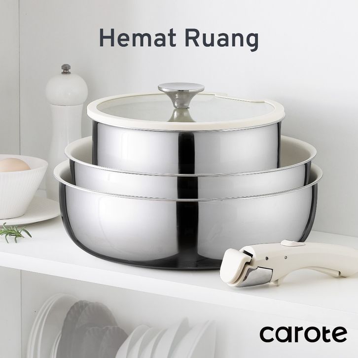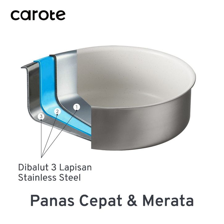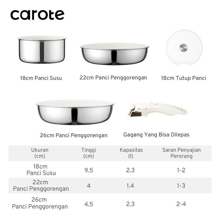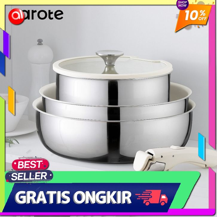 Panci set anti lengket {best seller} CAROTE Set Peralatan Masak Stainless Steel 5 PCS