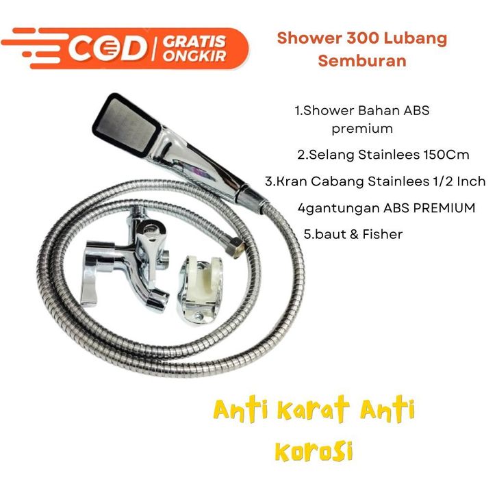 Paket Kran Besi Tahan Karat Plus Hand Shower 300 Lubang Komplit Mudah Dipasang Keran Kamar Mandi Berkualitas Premium