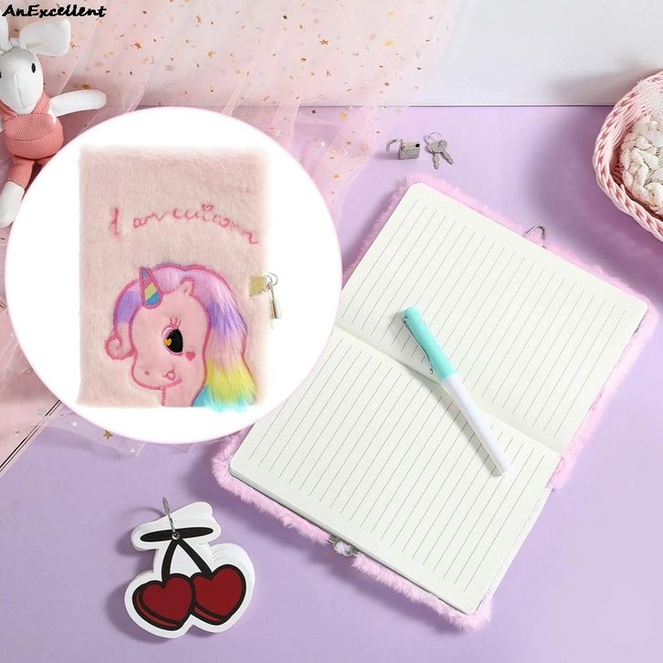 Buku Diary Gembok / Lock Unicorn ok Unicorn Buku Diary anak Unicorn bulu Kado Ultah anak Perempuan berkualitas