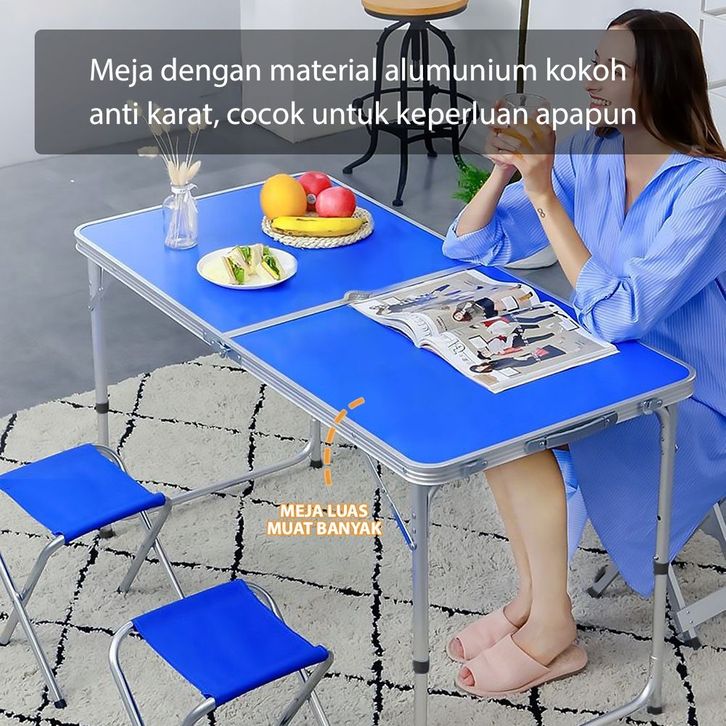 E.Home Meja Lipat Jualan Lubang Tengah Payung Meja Lapak Bazar Cafe Meja Lipat Set Koper Camping Outdoor Portable