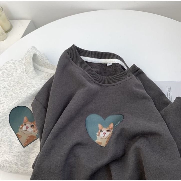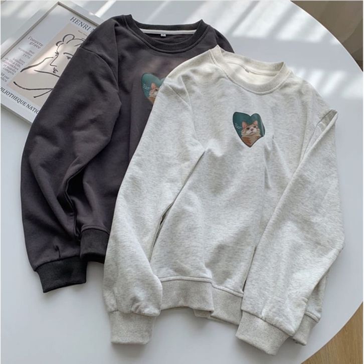 Sweater Wanita Basic Oblong Wanita | LOVE CAT Sweater Size M.L.XL | Crewneck Sweater Oblong Wanita Lucu FREE ONGKIR