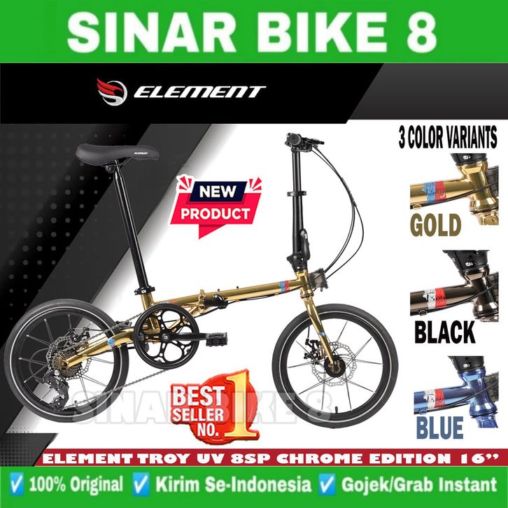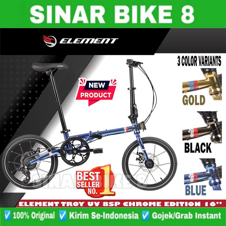 Sepeda Lipat ELEMENT TROY UV CHROME EDITION Ukuran 16 Inch 8 Speed Garansi Resmi